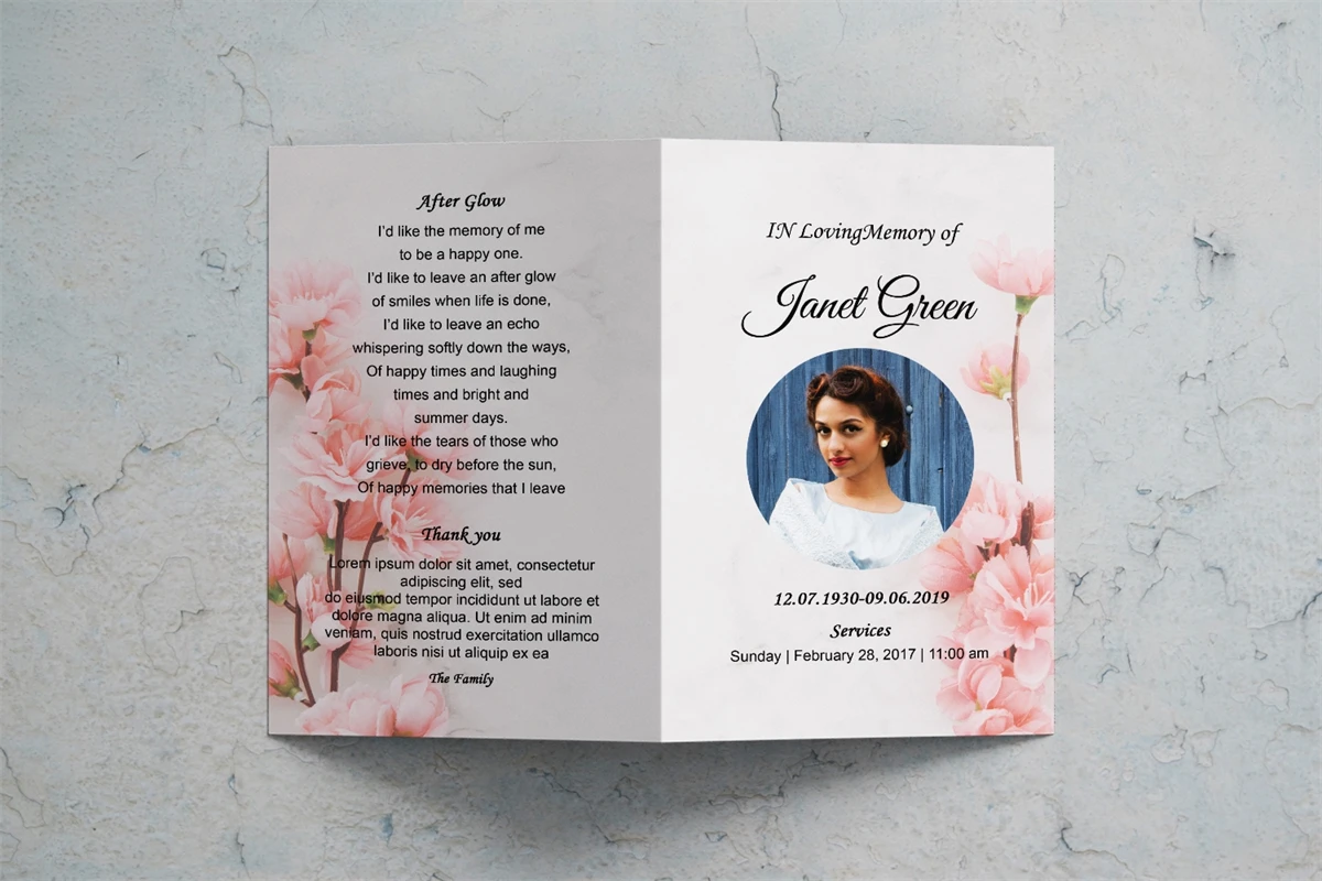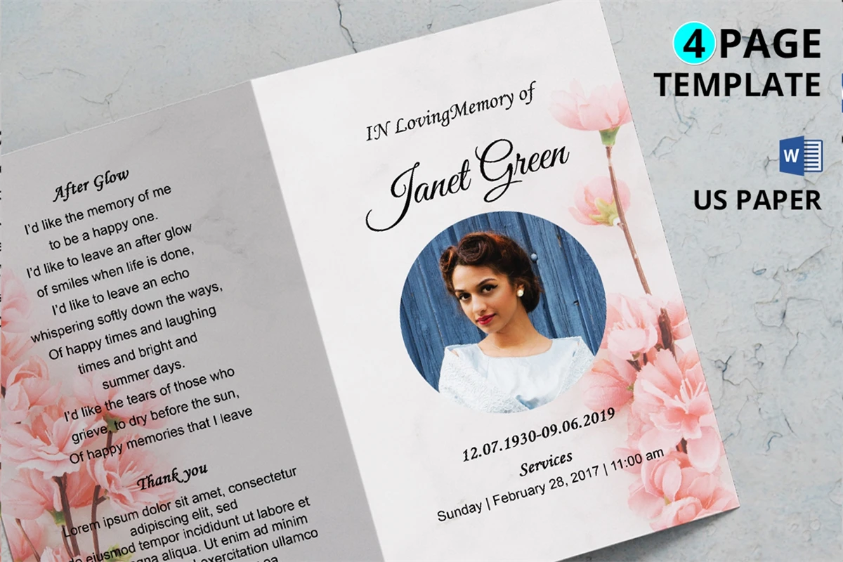 8.5x11 Inches Word, Publisher and CANVA Funeral Program Template.