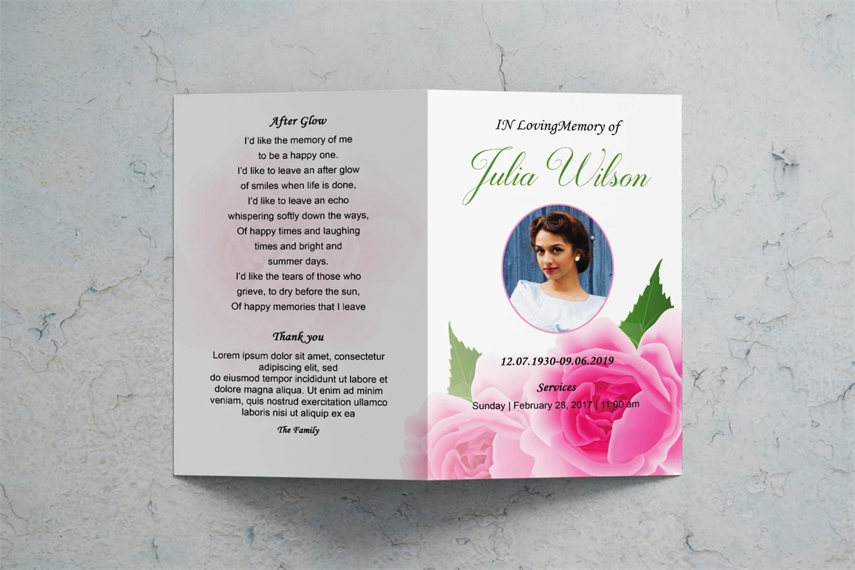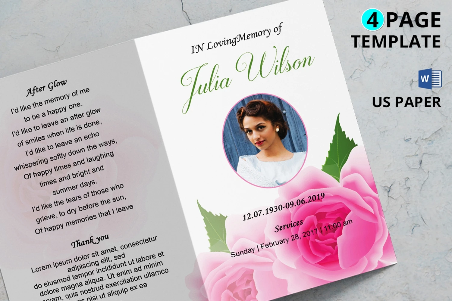 8.5x11 Inches Word, Publisher and CANVA Funeral Program Template.