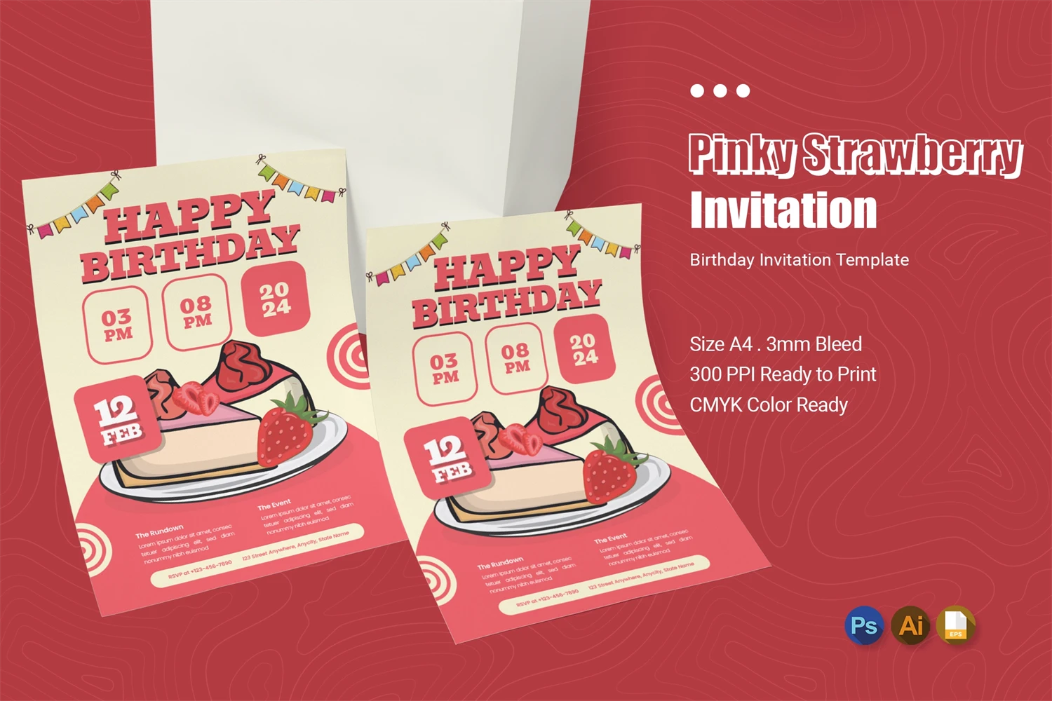 Of course you want to invite friends to your birthday party with the best invitations! Impress the invited guests with your style of invitation, by using this invitation card template. You can easily edit & customize each of the designs because every component is well organized and editable.