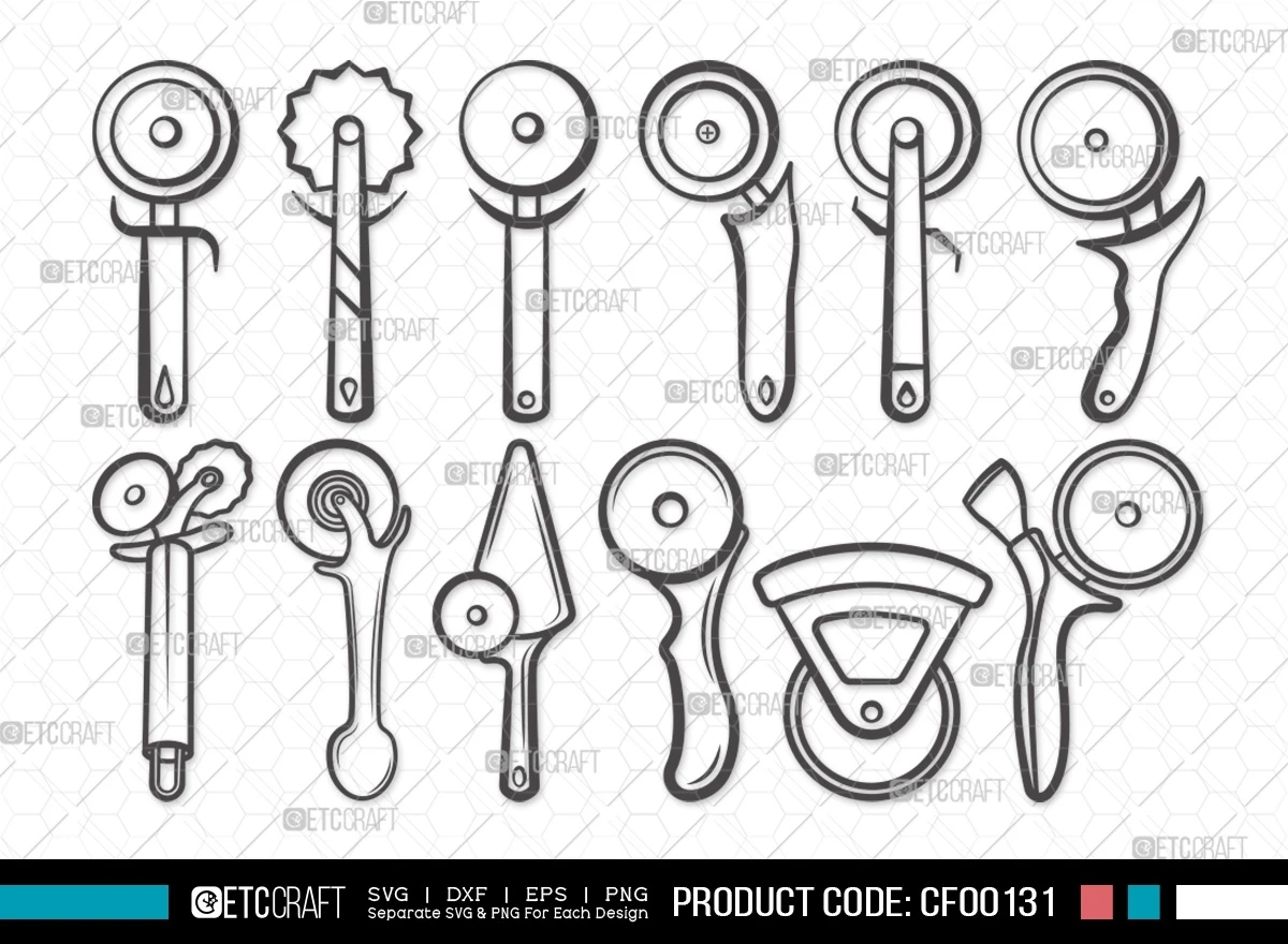 Slice through your creative projects with precision and style using our Pizza Cutter Outline Wheel Circle Knife SVG Cut File Bundle. This collection features a mouthwatering assortment of clipart designs inspired by pizza cutters, perfect for adding a touch of culinary artistry to your crafts. Whether you're a foodie or a crafting enthusiast, this bundle offers the perfect toolkit to create designs that are as satisfying as a fresh, hot slice of pizza.