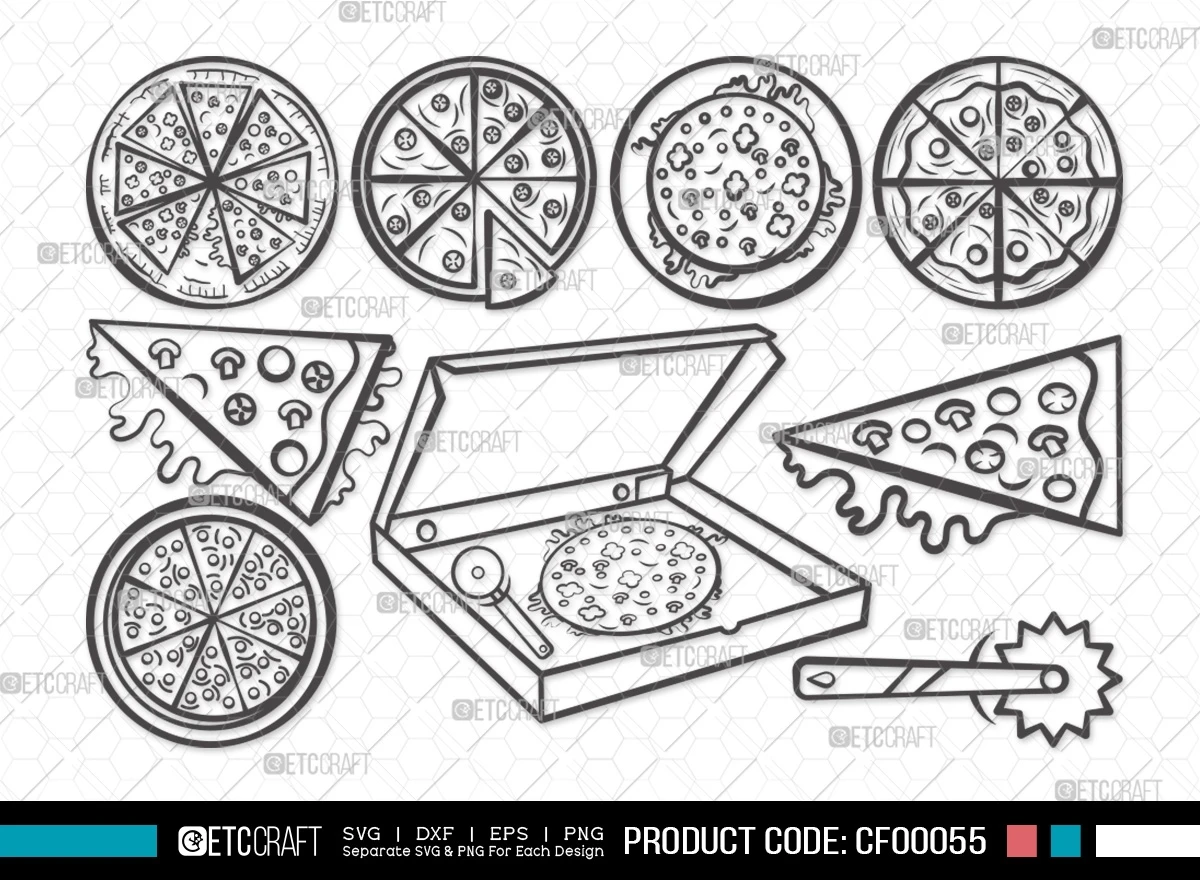 Treat your creativity to a slice of creativity with our "Pizza Outline Pepperoni Food Slice" SVG cut file bundle. Unleash the delicious essence of pizza and infuse it into your craft projects with these delightful and customizable designs.