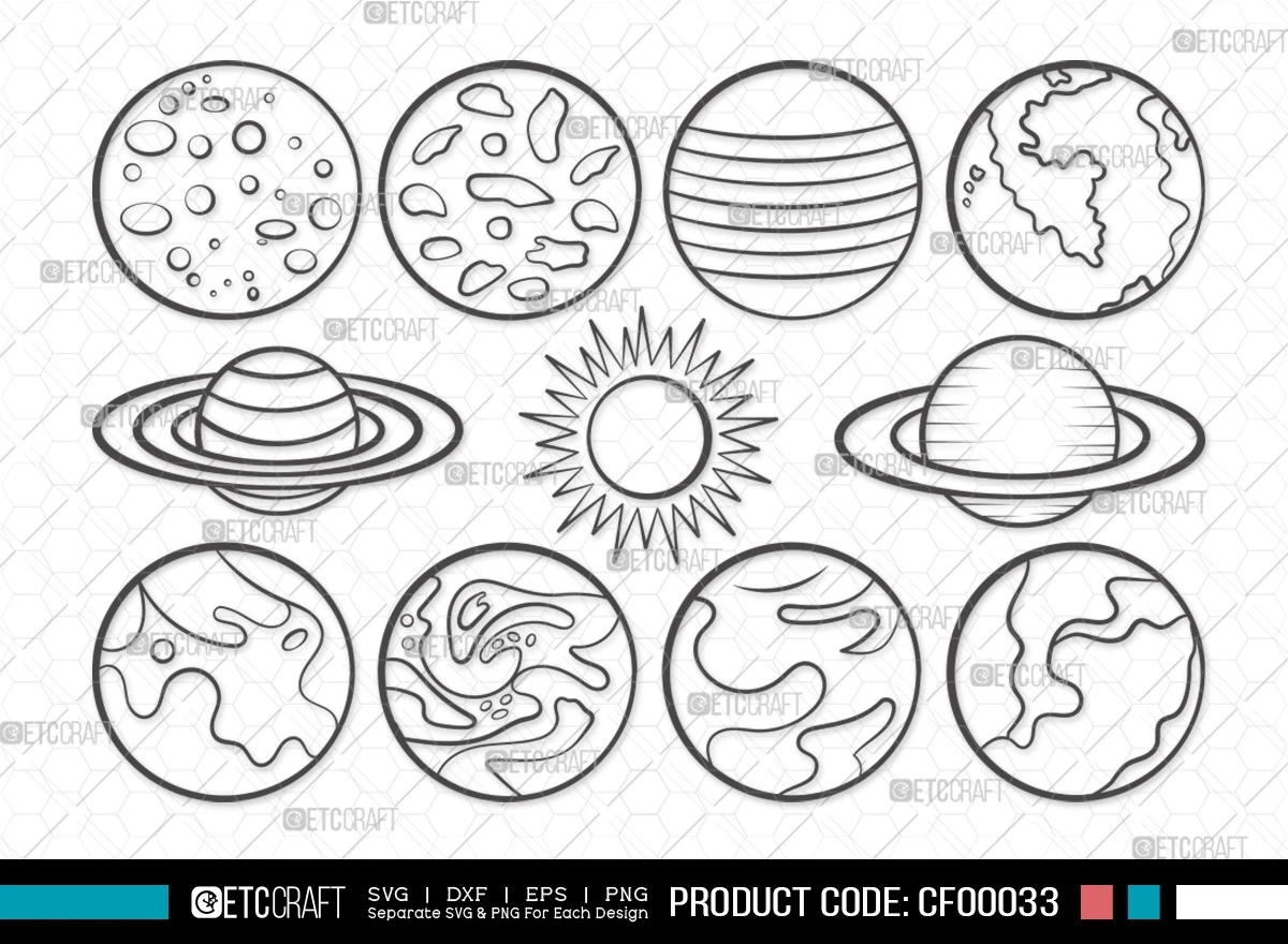 Explore the cosmic wonders with our Planet Outline World Globe SVG Cut File Bundle – a digital collection that invites you to embark on a creative celestial journey, capturing the essence of our extraordinary universe.