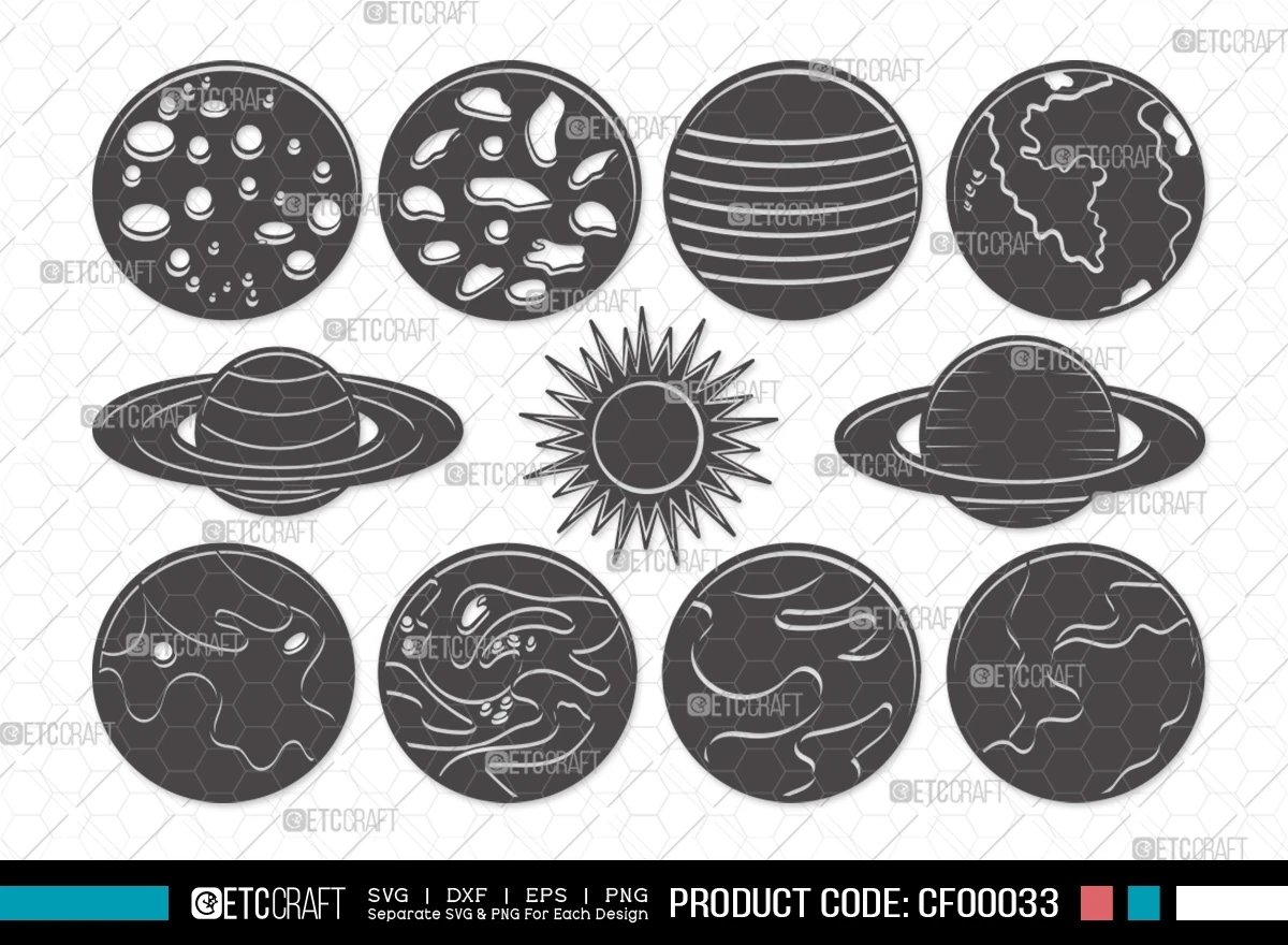 Embark on a creative odyssey with our Planet Silhouette World Globe SVG Cut File Bundle – a digital collection that invites you to explore the beauty of our cosmos and infuse cosmic wonder into your projects.