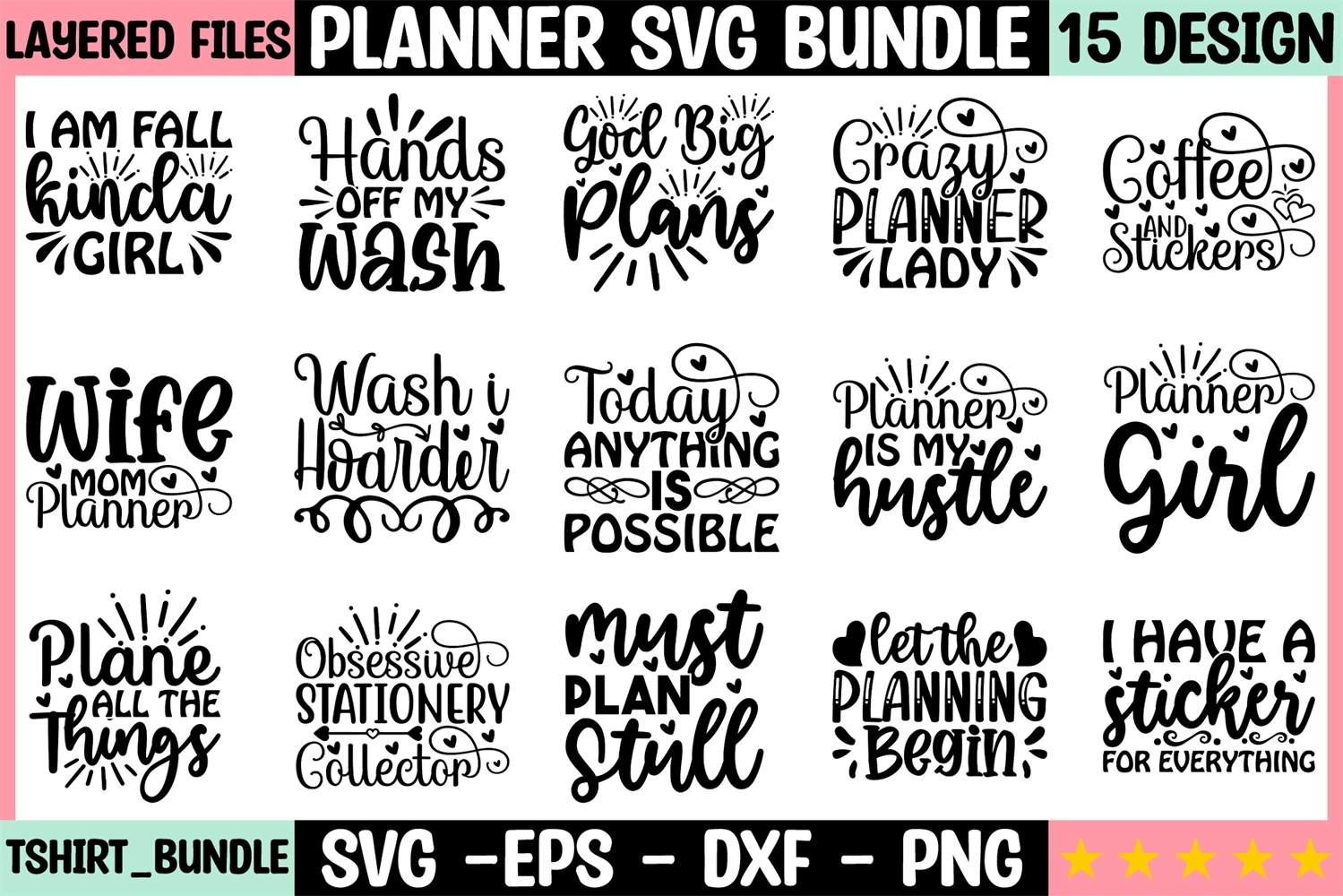 This Bundle Includes High-quality PNG Files Perfect For Sublimation. With This Bundle, Youll Be Able To Create Planner SVG Bundle Themed Products That Will Sell Like Hotcakes!