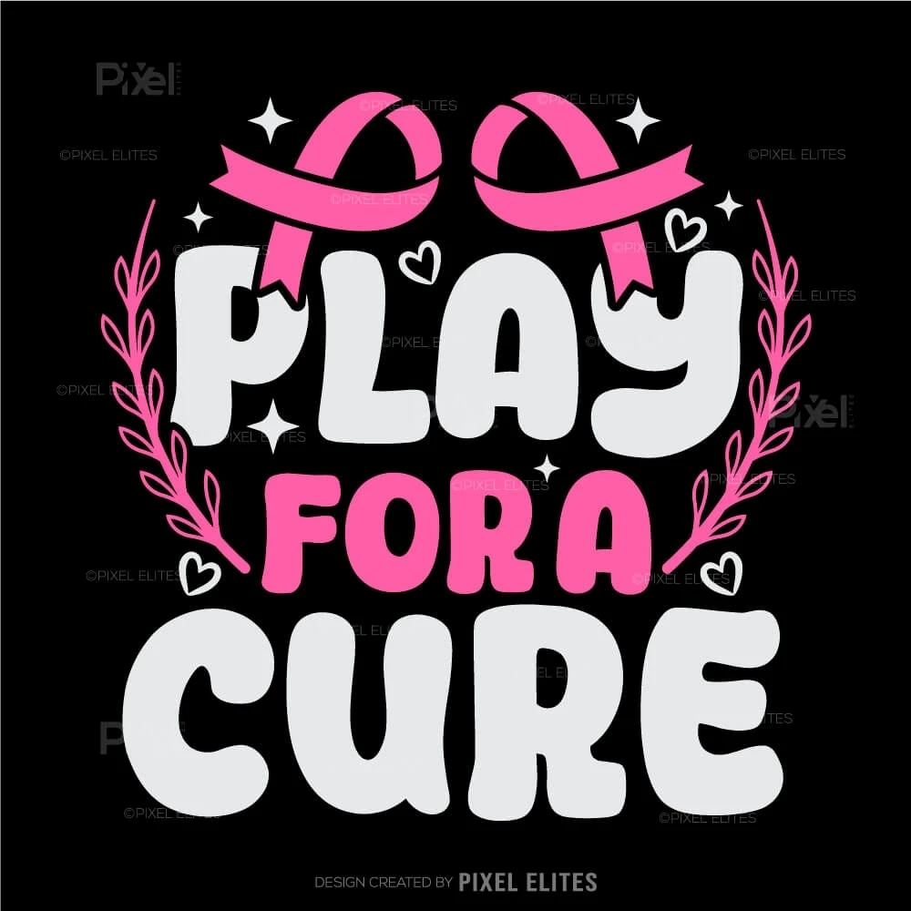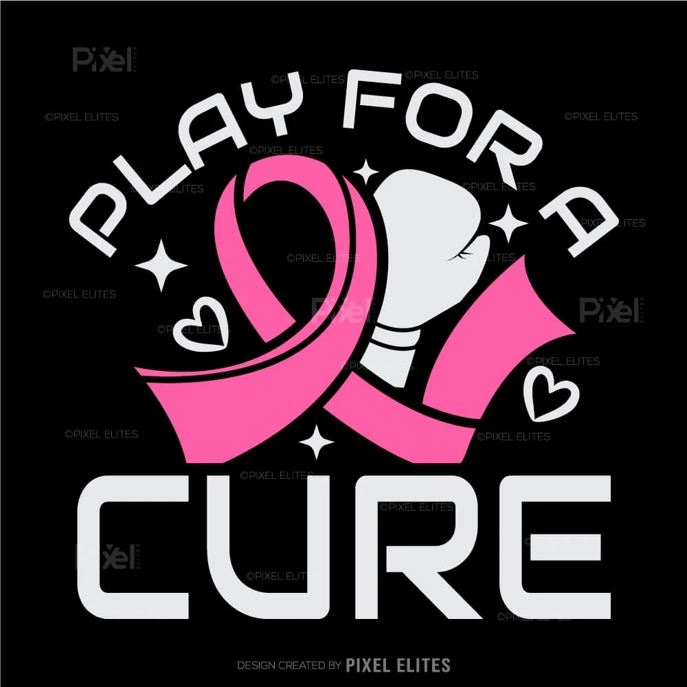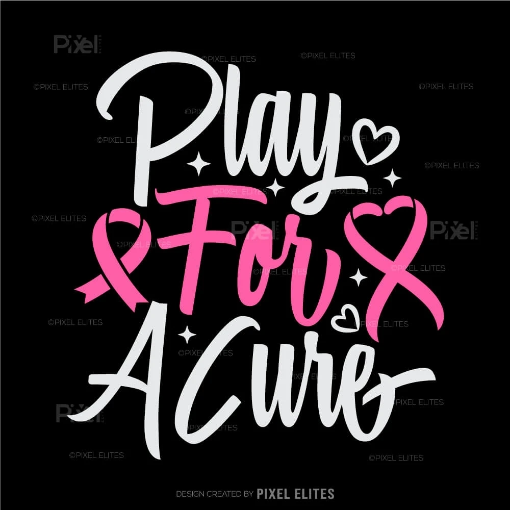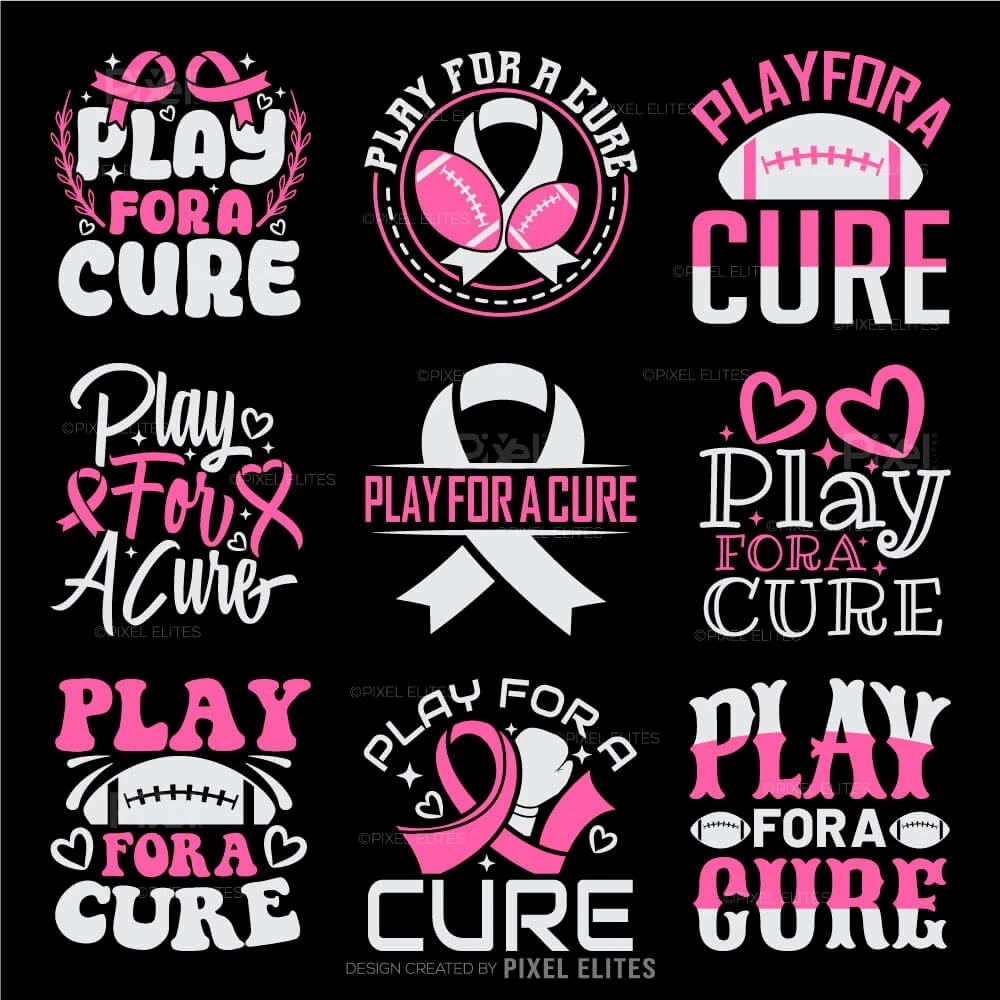 Play For A Cure SVG Pink Ribbon Fight Cancer T-Shirt Design Bundle - Breast Cancer Quote Design