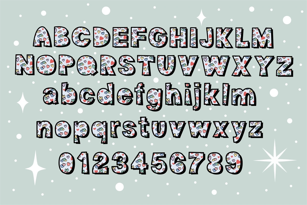 Play Heart is a Cute Colorful Pattern Font in Valentine Theme. This font is the perfect fit for all of your t-shirt, social media, crafty DIY projects, and much more!