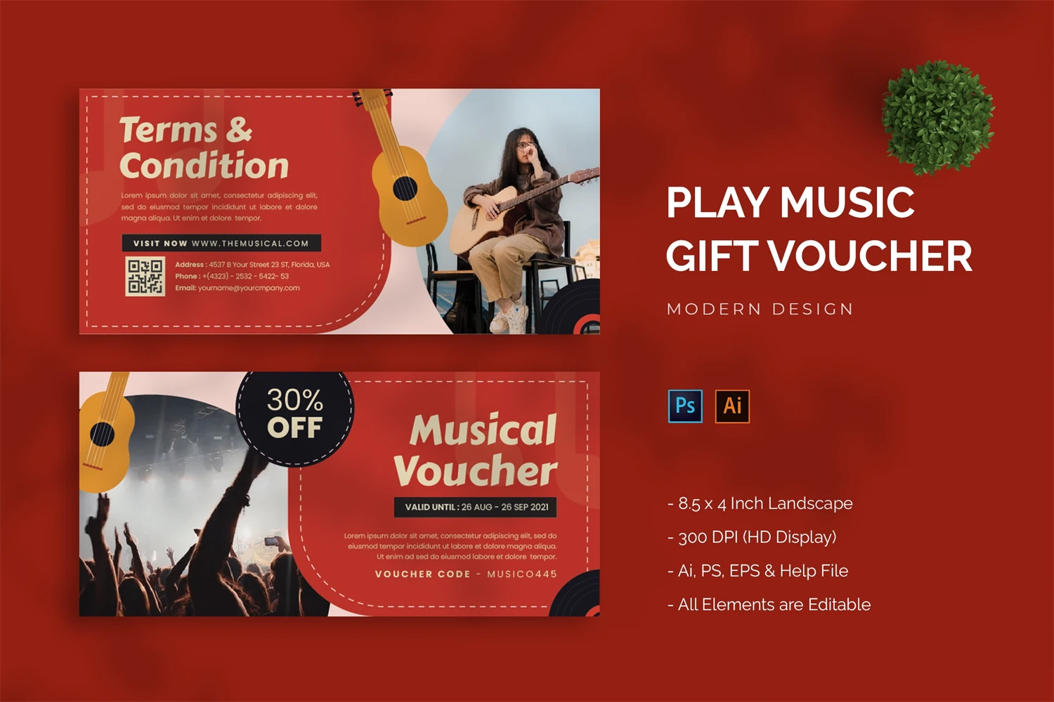 This is a Play Music - Gift Voucher Get it now and don't miss it!, a Gift Voucher for all your business and personal needs. Great for your business and this design will keep you interested, elegant, and easy to edit according to your needs (** Adobe Illustrator, Adobe Photoshop **). You can use this Gift Voucher for your business, event or other publishing like marketing promotions and company profile, and you can also use this gift voucher to your clients and family, I hope you enjoy this, Hope you like it don't forget to rate, Thanks.