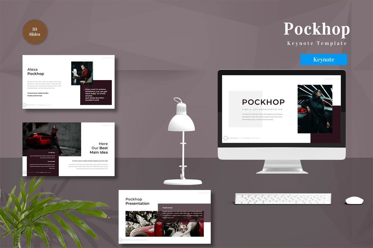 Get it now! **Pockhop - Keynote Template** for All Business and Personal Needs All elements on this template are editable; input your content, replace your image with a placeholder, change the color, and all presentations include an animated slide to present your slides.