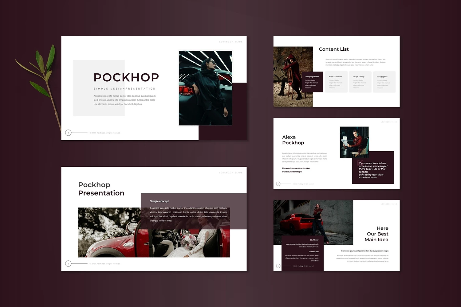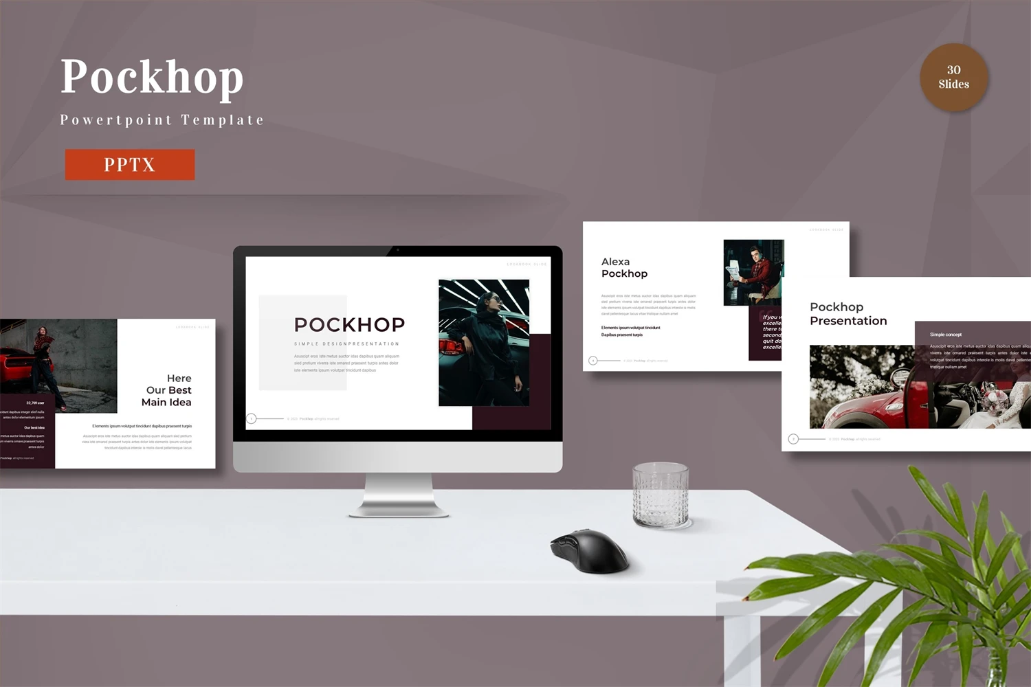 Get it now! **Pockhop - Powerpoint Template** for All Business and Personal Needs All elements on this template are editable; input your content, replace your image with a placeholder, change the color, and all presentations include an animated slide to present your slides.