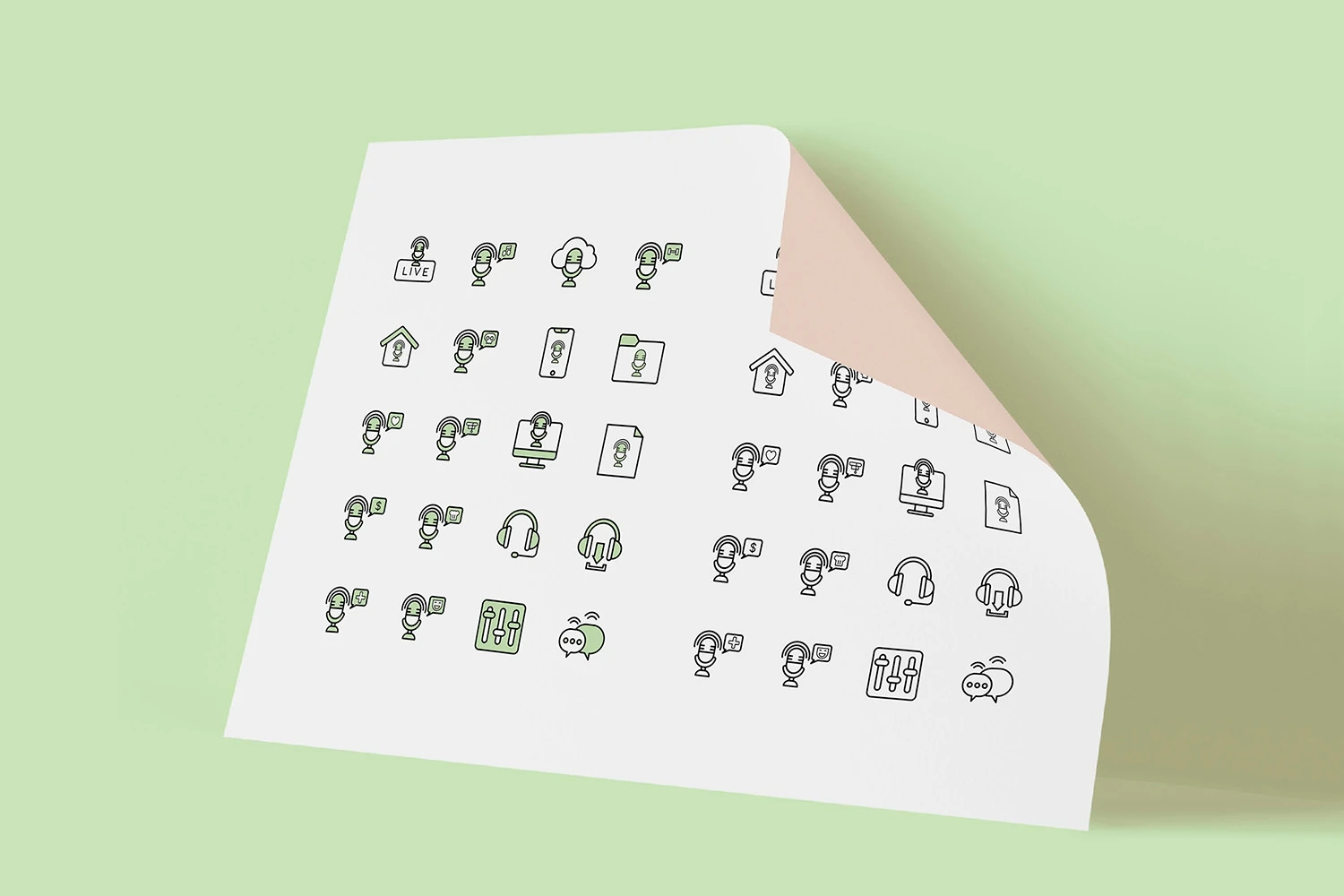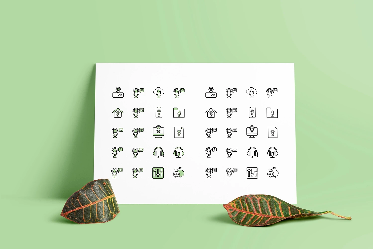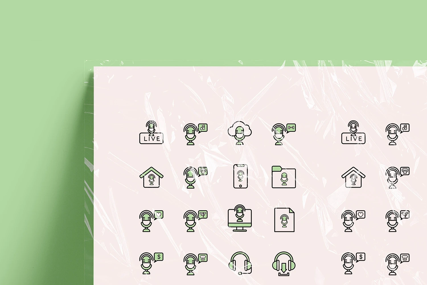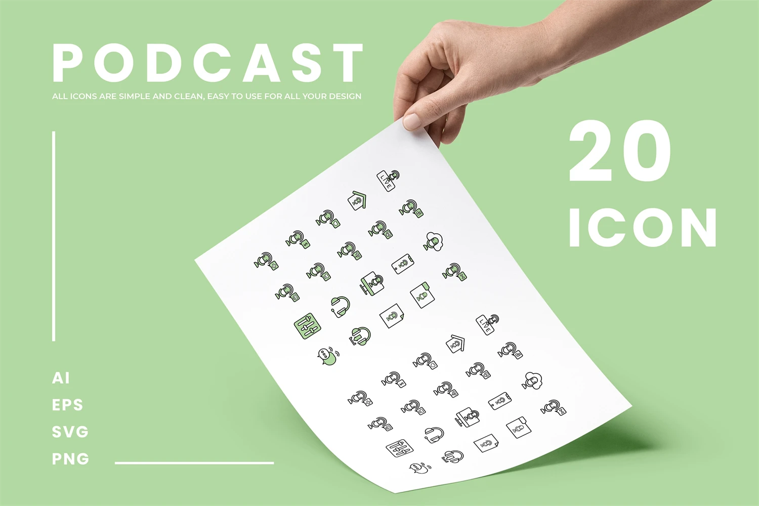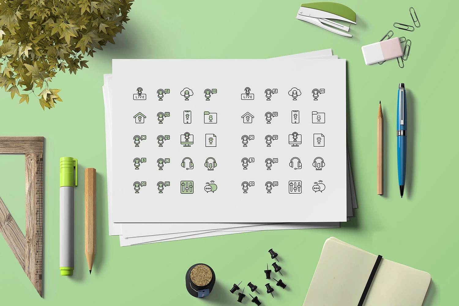 Don't miss it Podcast - Icons This professional Icons pack, high quality, for professional designers, easy to use, fully editable & customizable in Adobe Illustrator