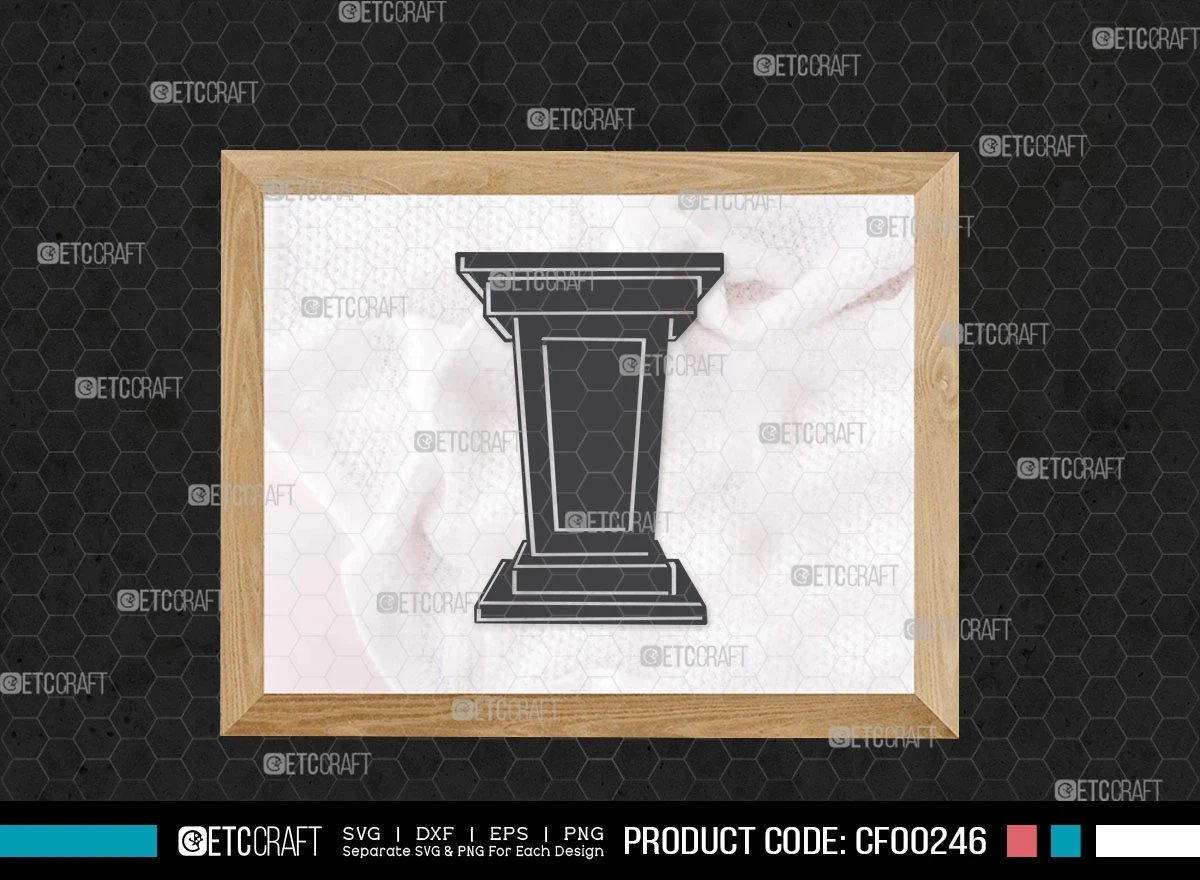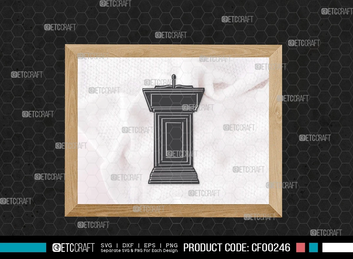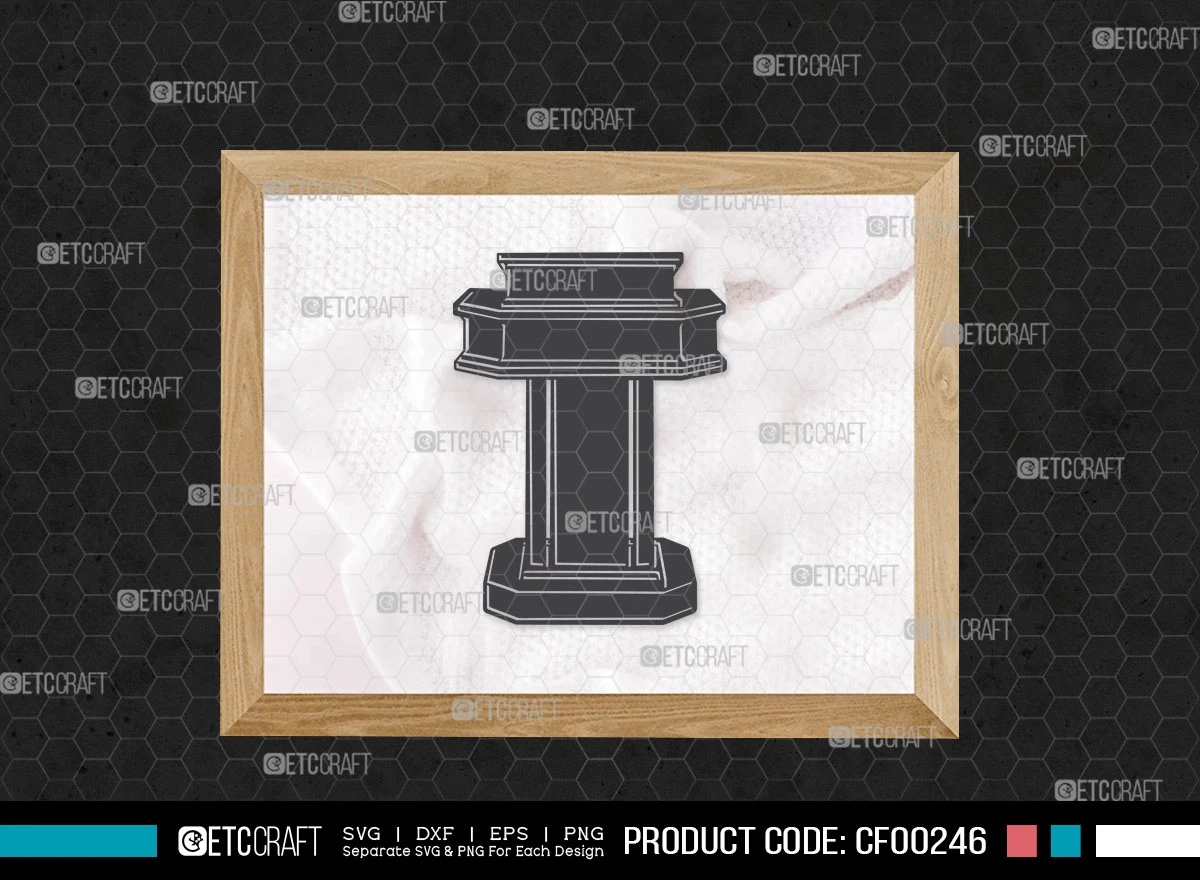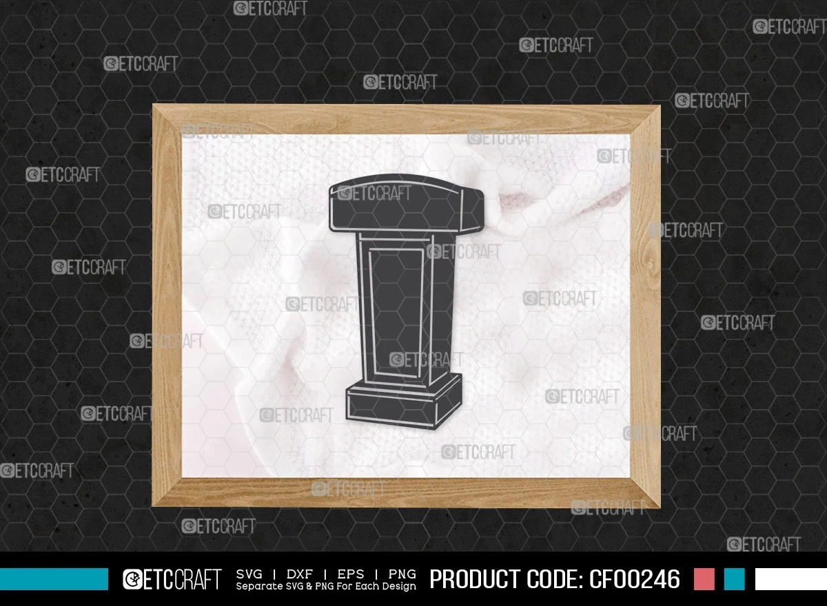 Whether you're an educator seeking to enhance your teaching materials, a presenter preparing an engaging presentation, or a designer looking to add a touch of professionalism to your projects, our "Podium Stand Silhouette Wooden Lecture Podium Stand With Microphone & Speaker SVG Cut File Bundle" is the ultimate resource to elevate your creative and educational work with a touch of refinement and poise.