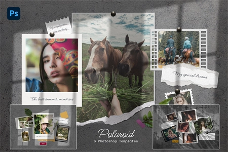 It's easy to use your photos. Just put photo into smart object. All text are editable, free fonts.