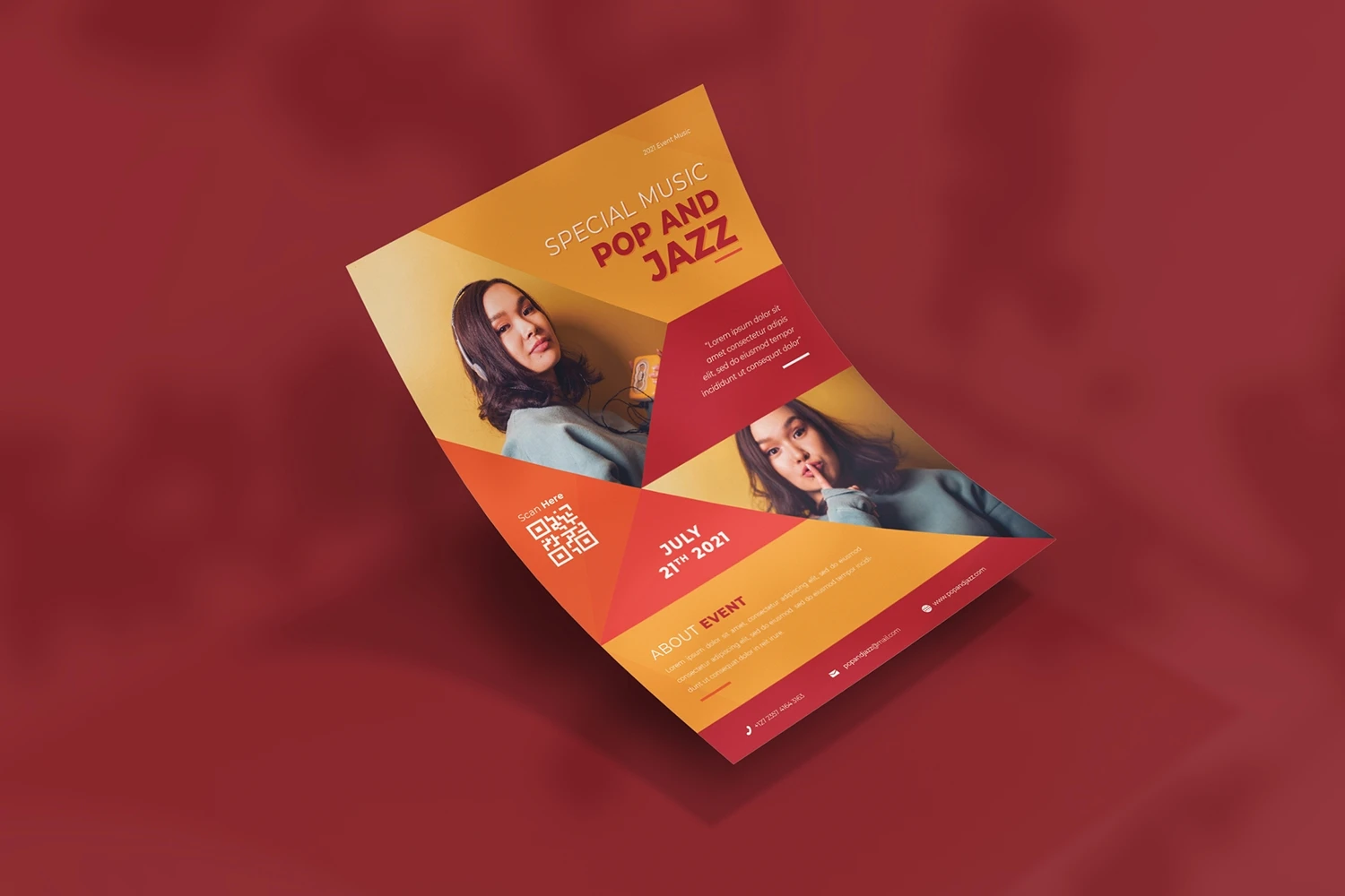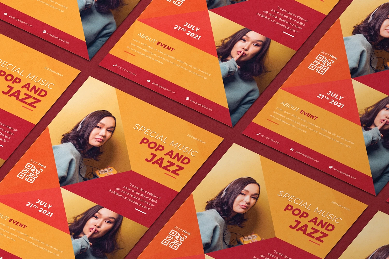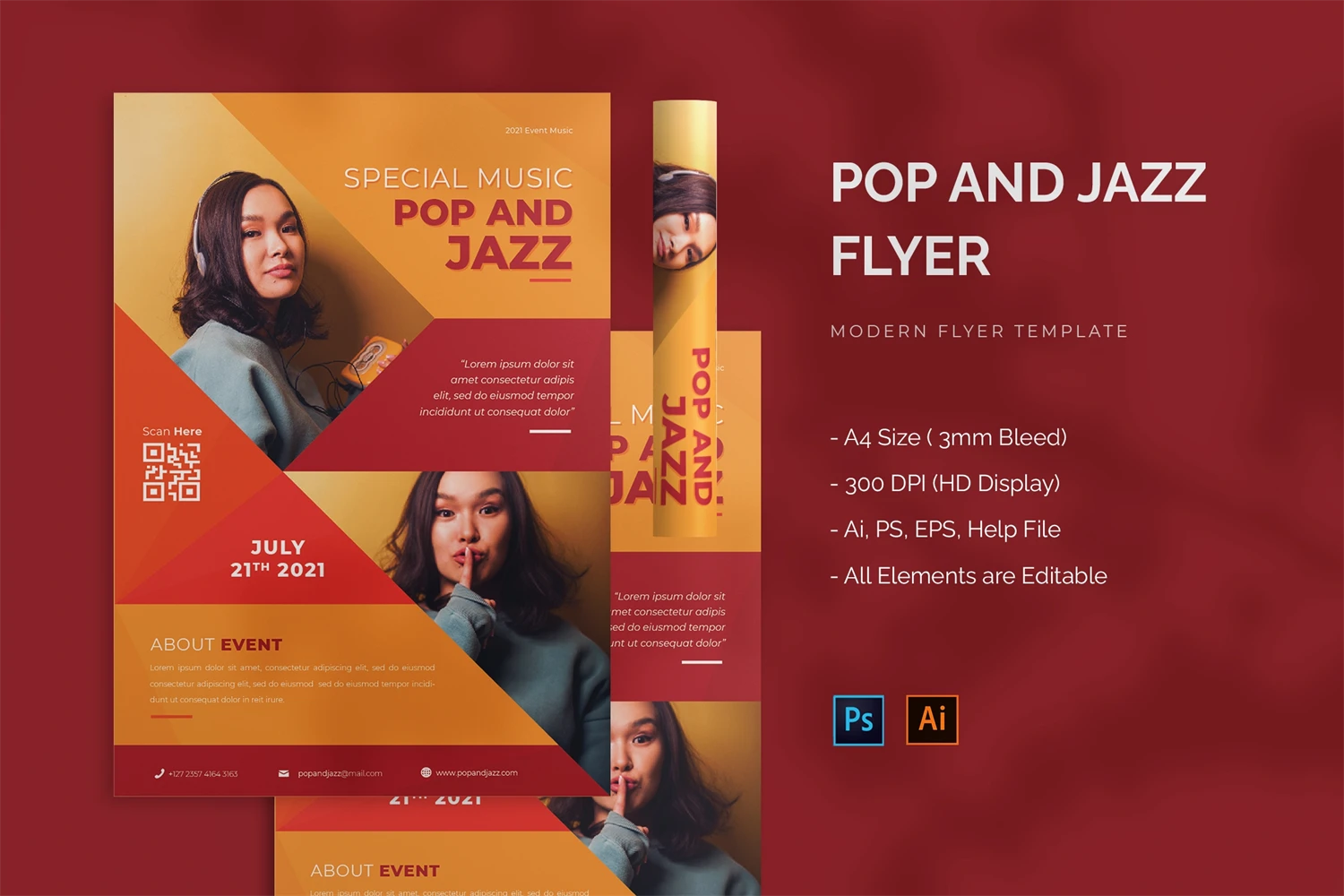 Pop and Jazz - Flyer. This Flyer template is designed for your company's business needs. very clean and elegant, and also easily edited and adjusted to your liking