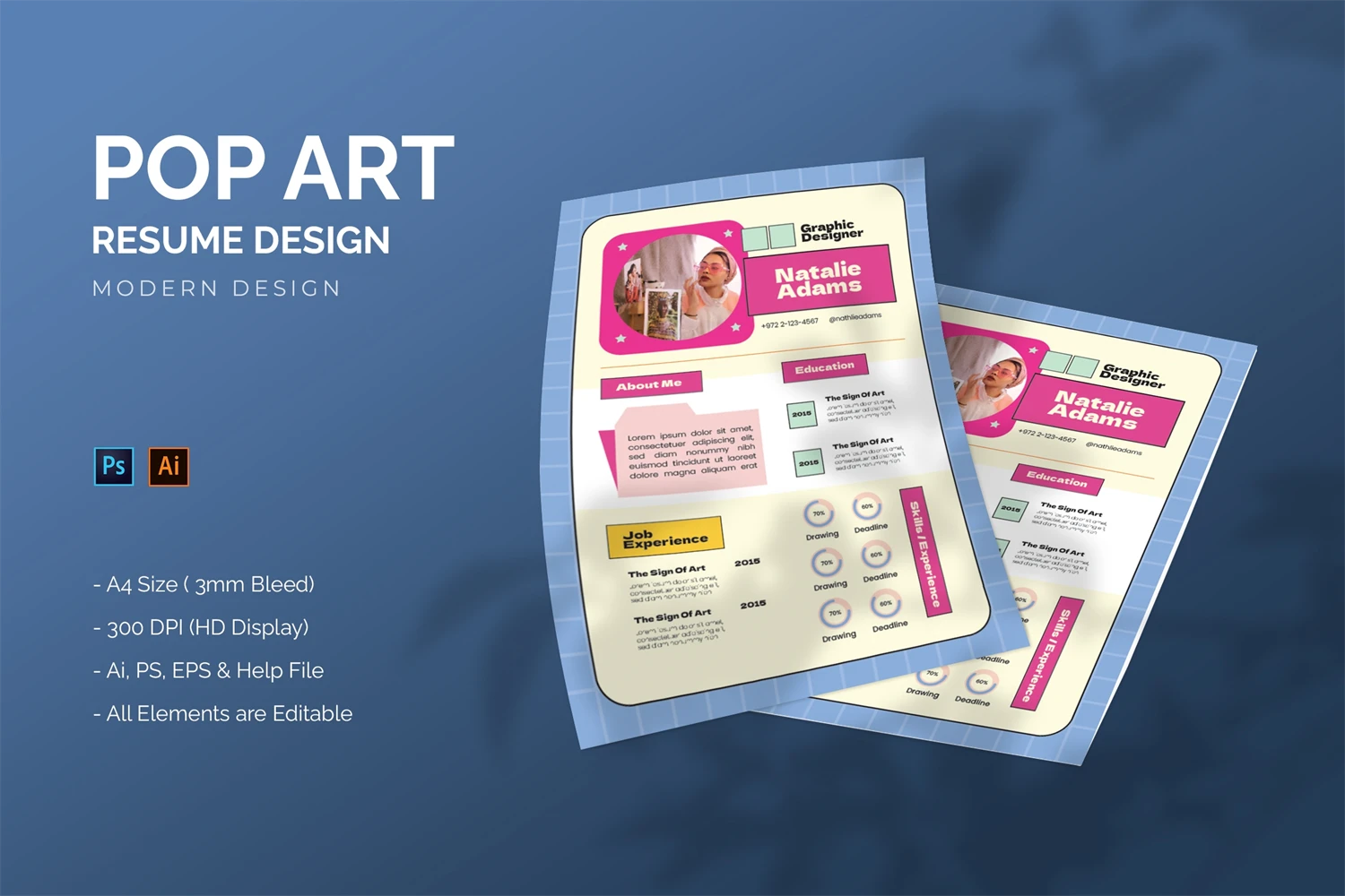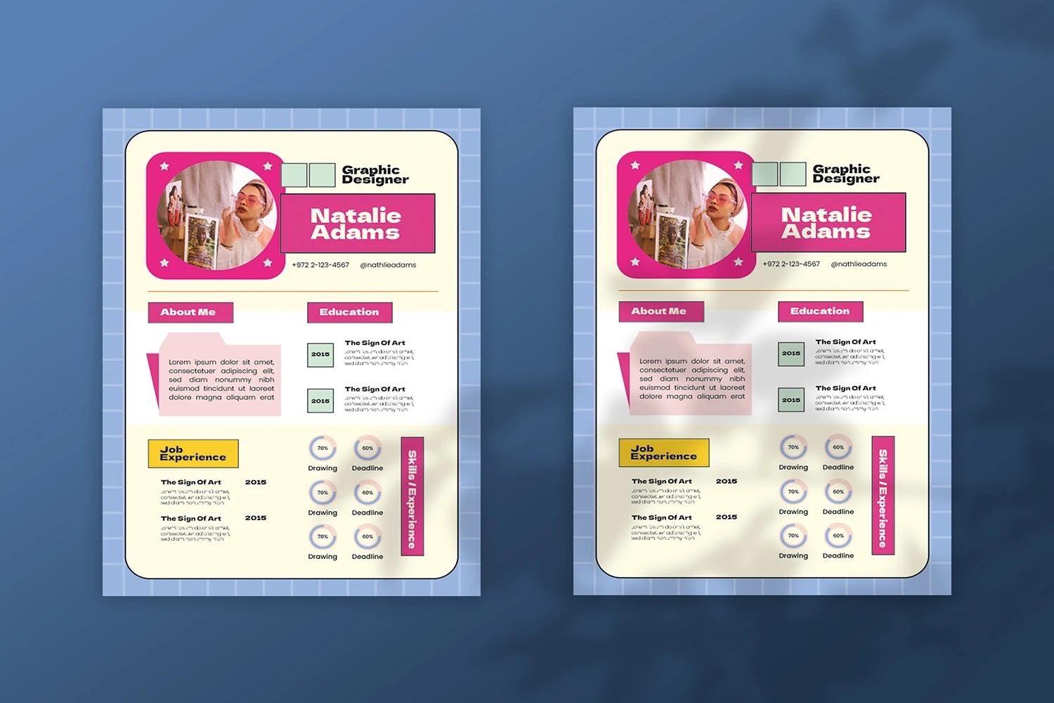 This CV resume design template lets you tell your story to potential employers or collaborators by showcasing your skills, experience, and accomplishments. It presents your credentials clearly and professionally to draw attention and highlight your strengths.