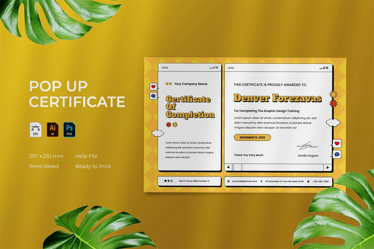 Get it now!, Use this Certificate Template in your business, such as your company or institution in completing coursework, training or work, It can also be used for, awards, academies, fashion, photography, food, lifestyle, architecture, etc. Cheers ..