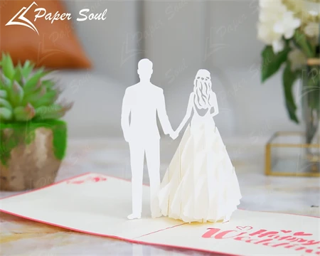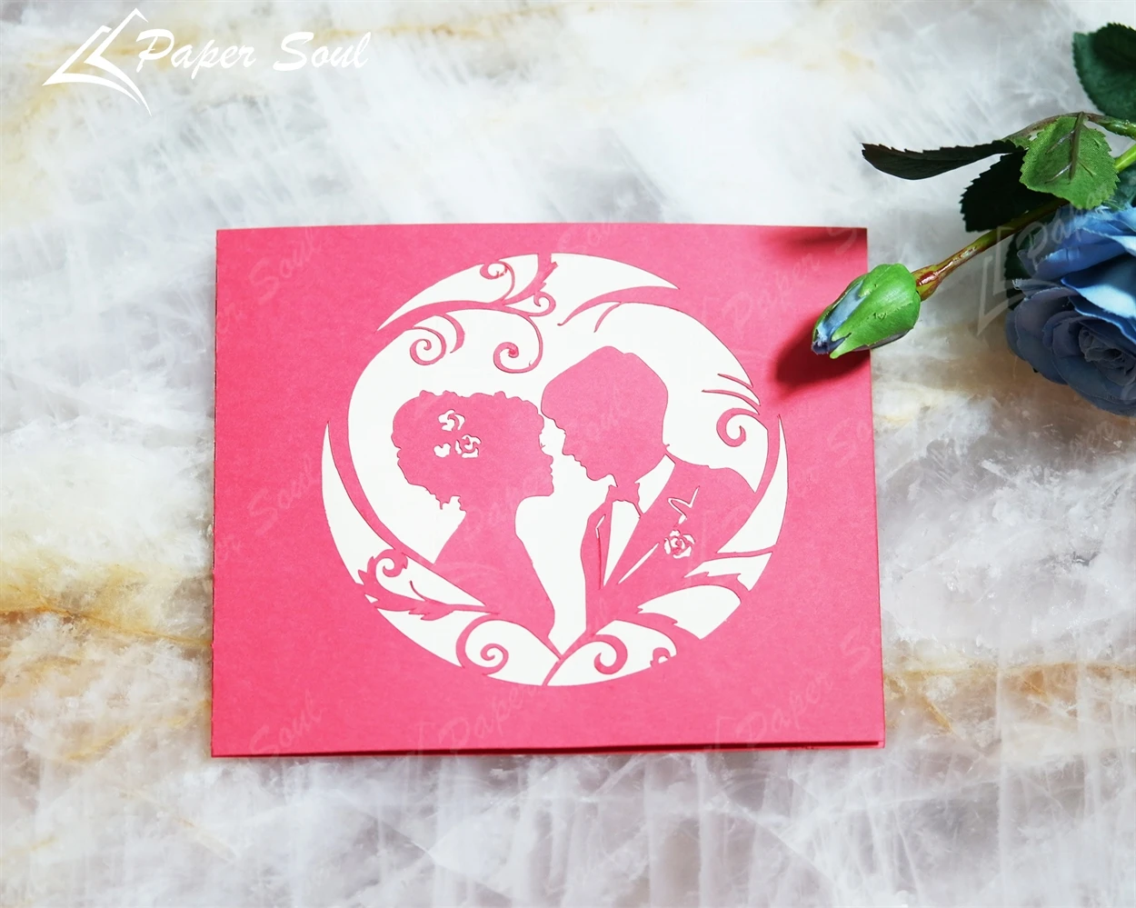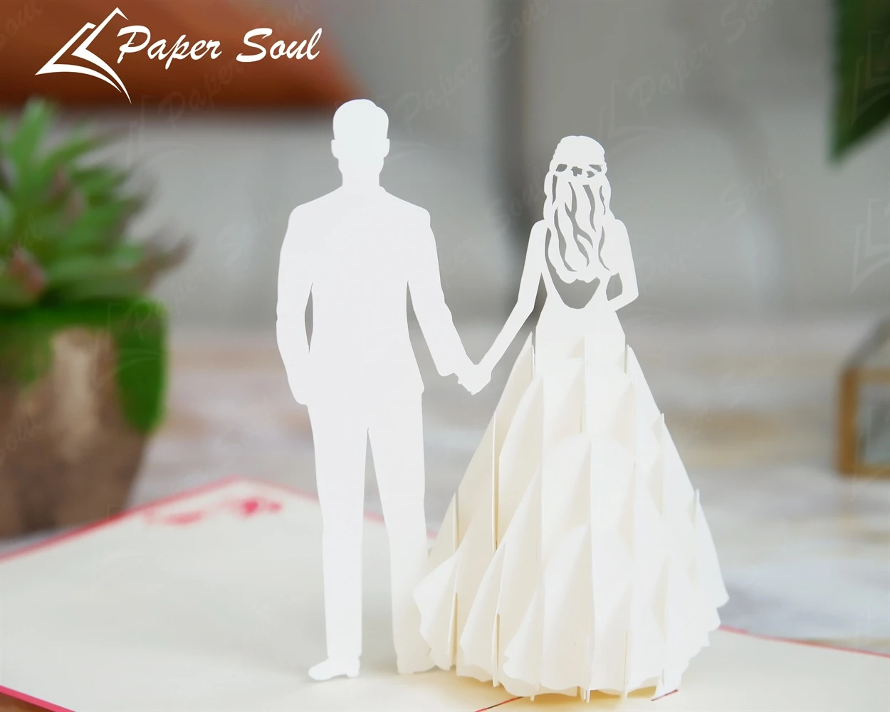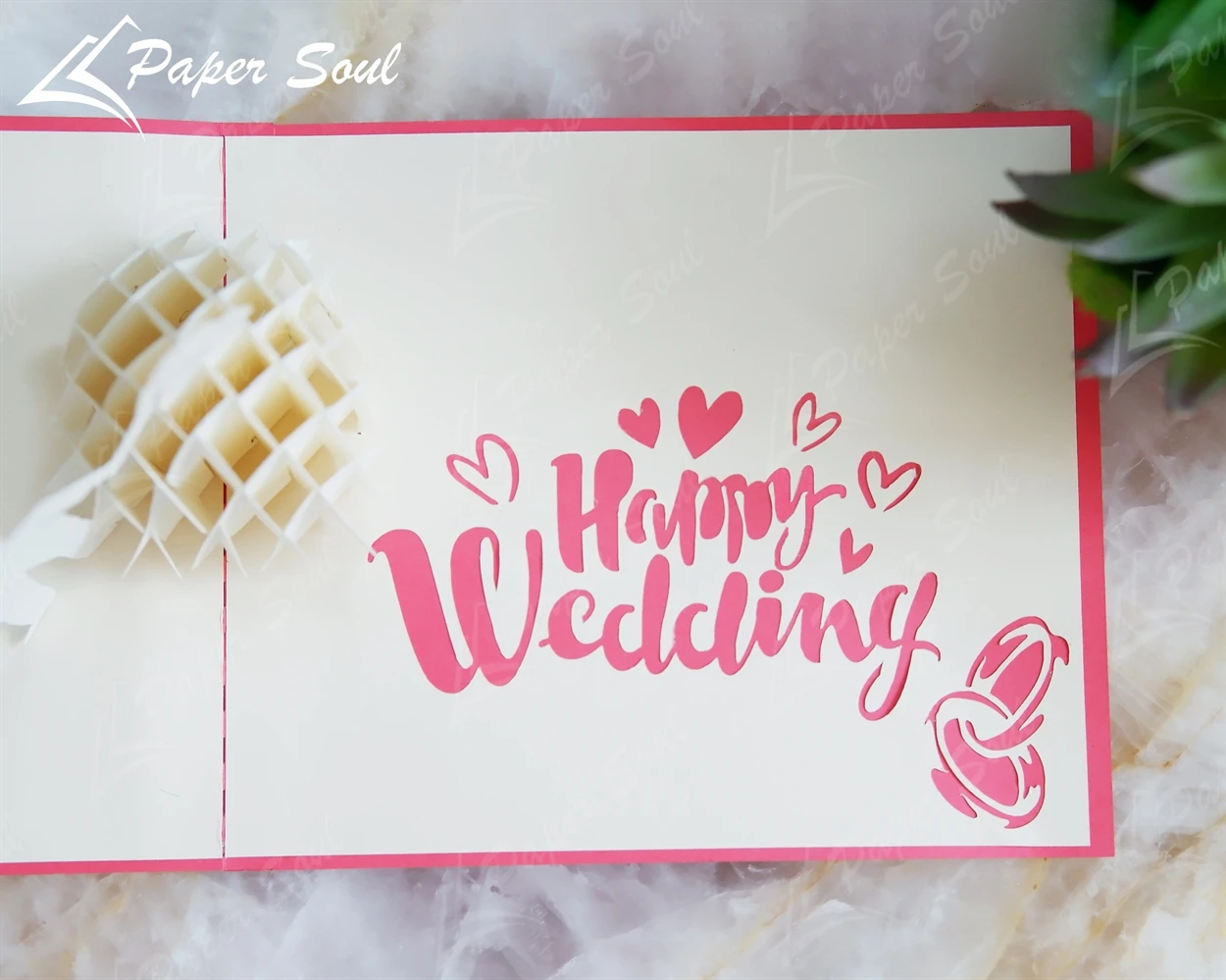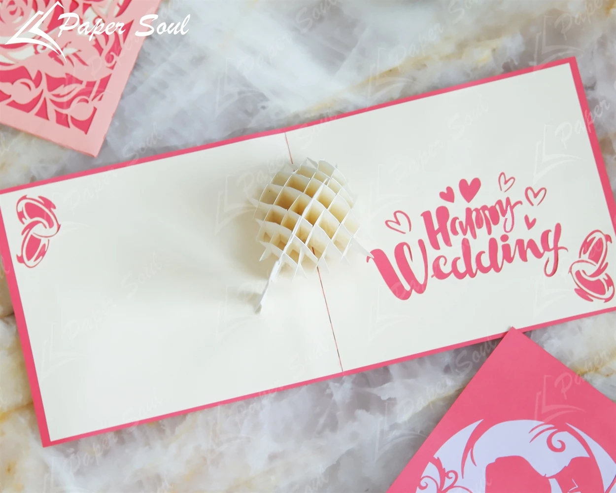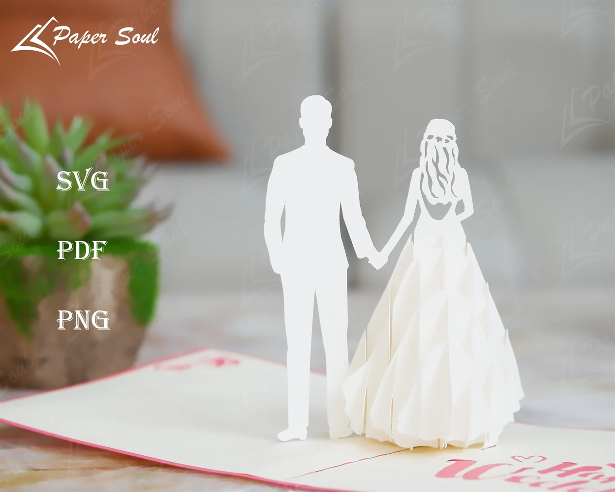 Are you finding a card that is made from your own hands? This pop-up wedding card SVG helps you make a beautiful card for the bride and groom. The groom and bride will be surprised when the card opens.