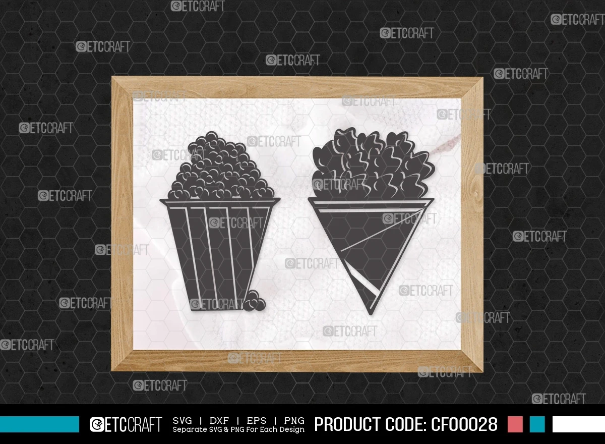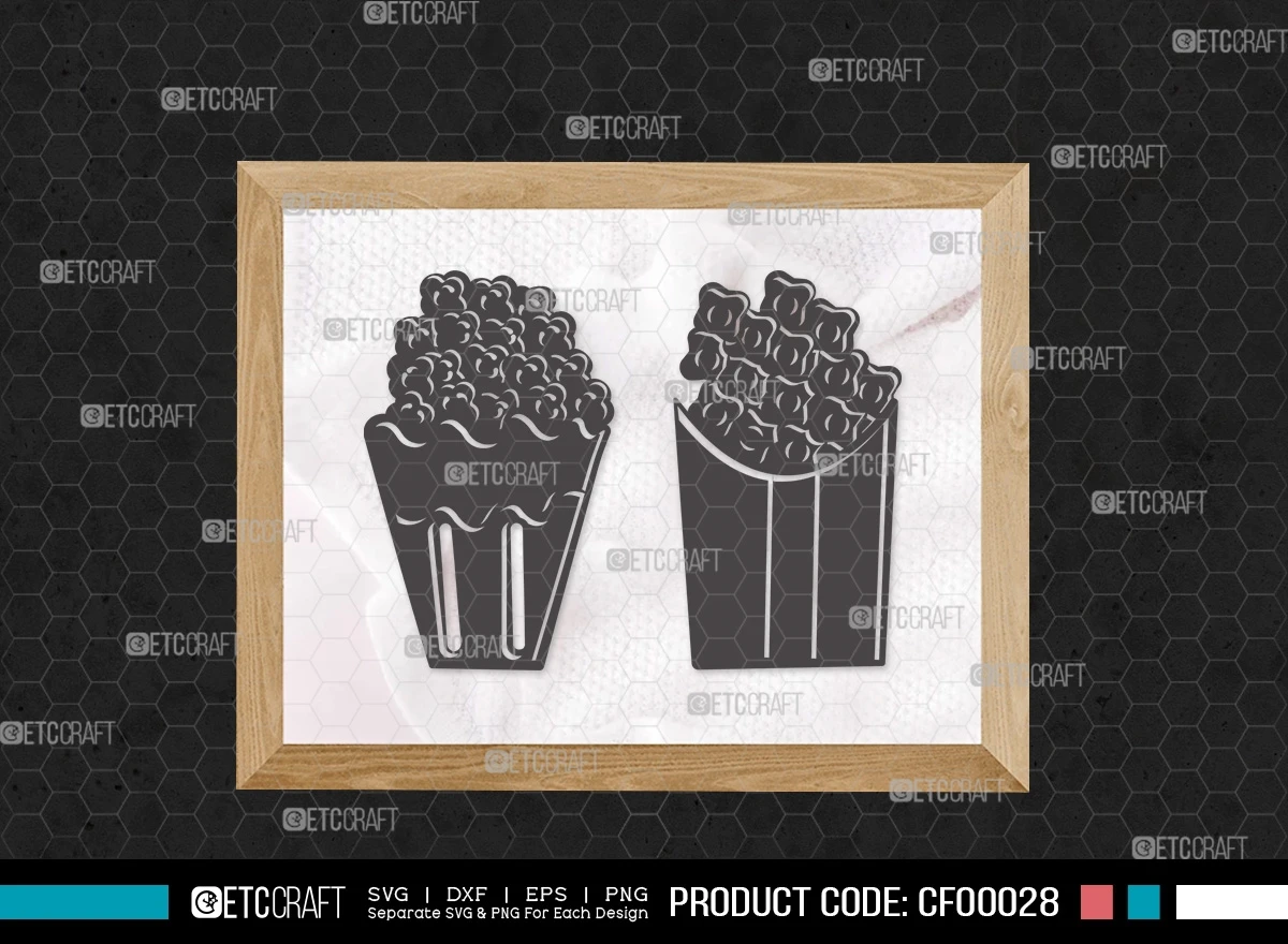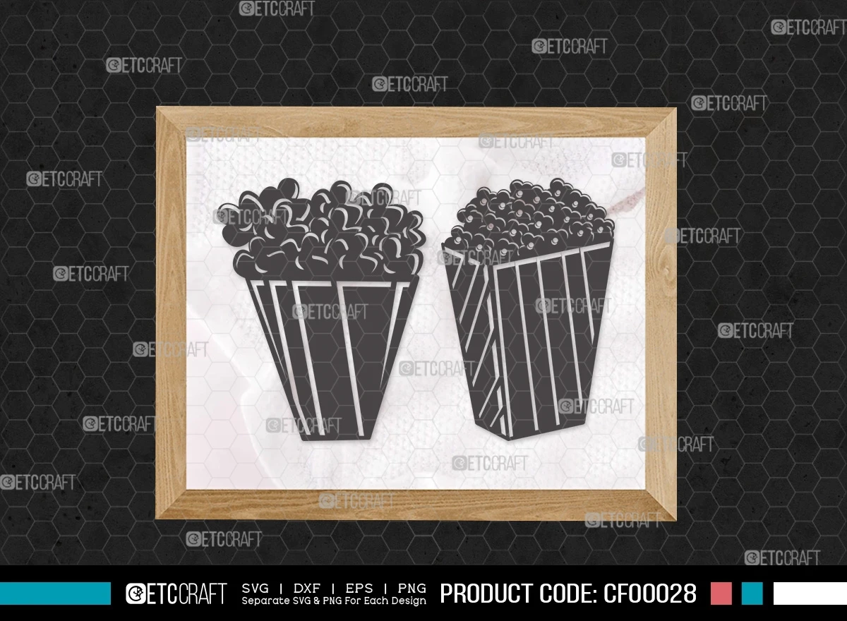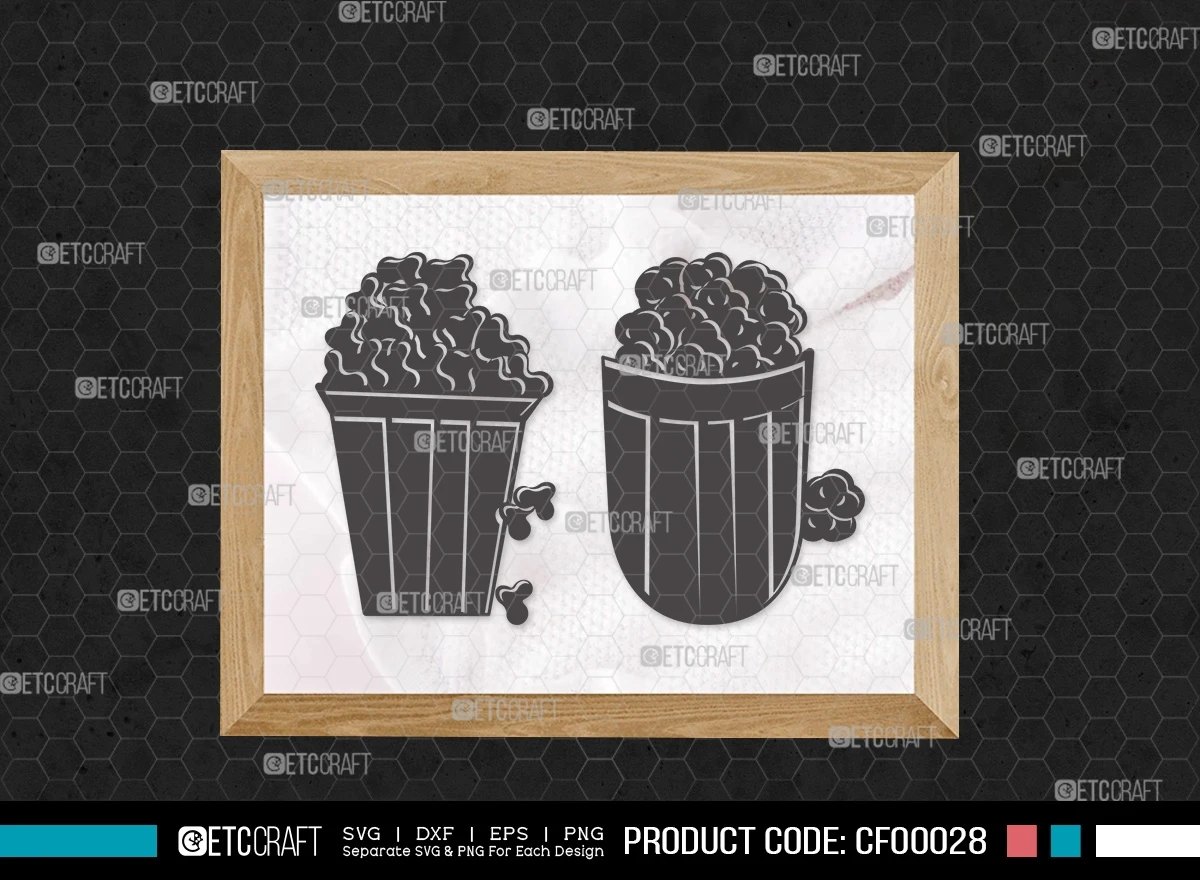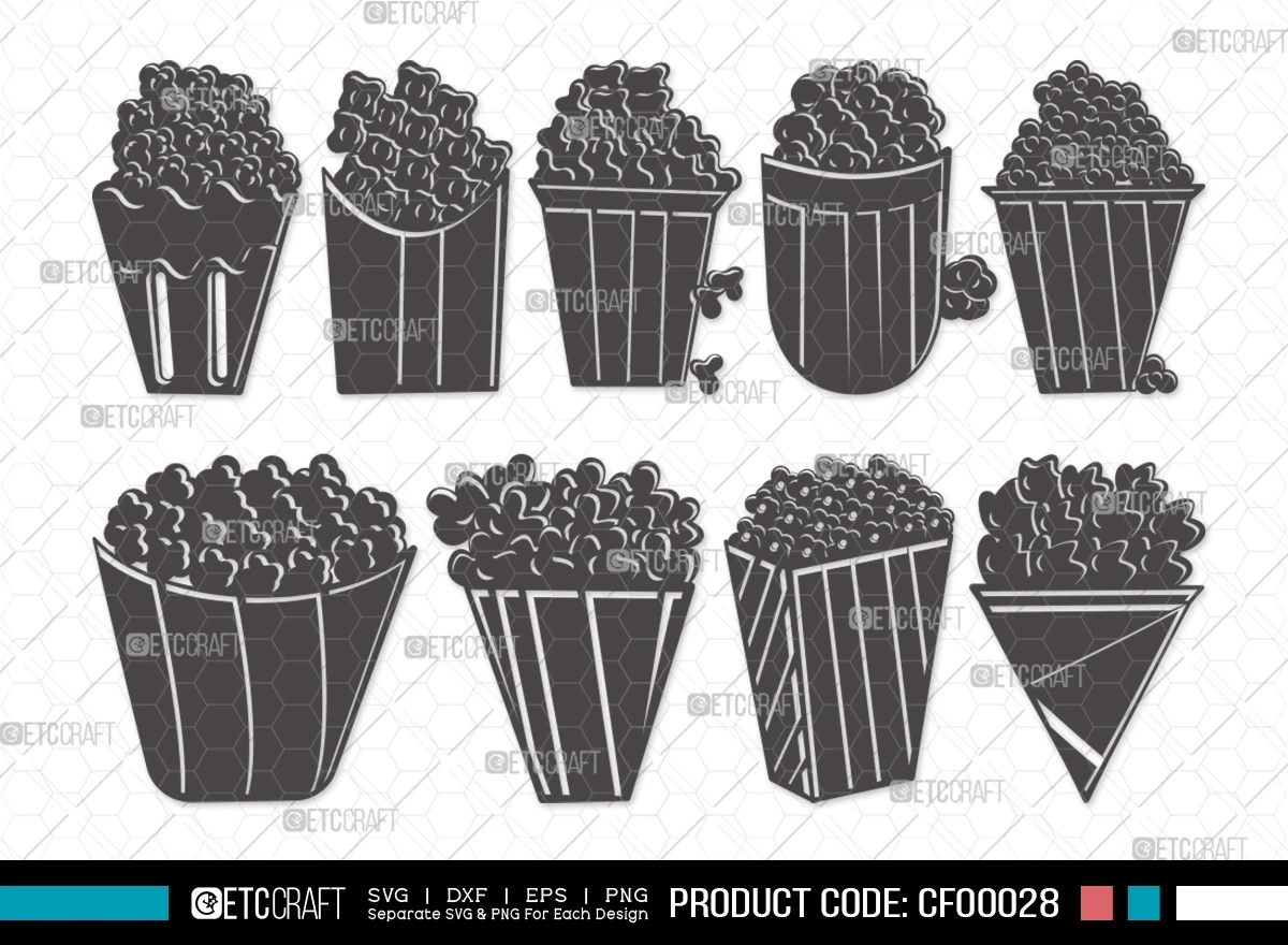 Add a dash of cinematic charm to your crafting projects with our Popcorn Silhouette Movie Food SVG Cut File Bundle. Bring the excitement of the movies to your creative endeavors with these delightful designs!