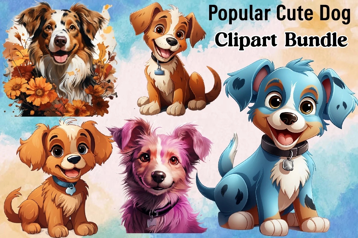 Watercolor Popular Cute Dog Sublimation Design Bundle