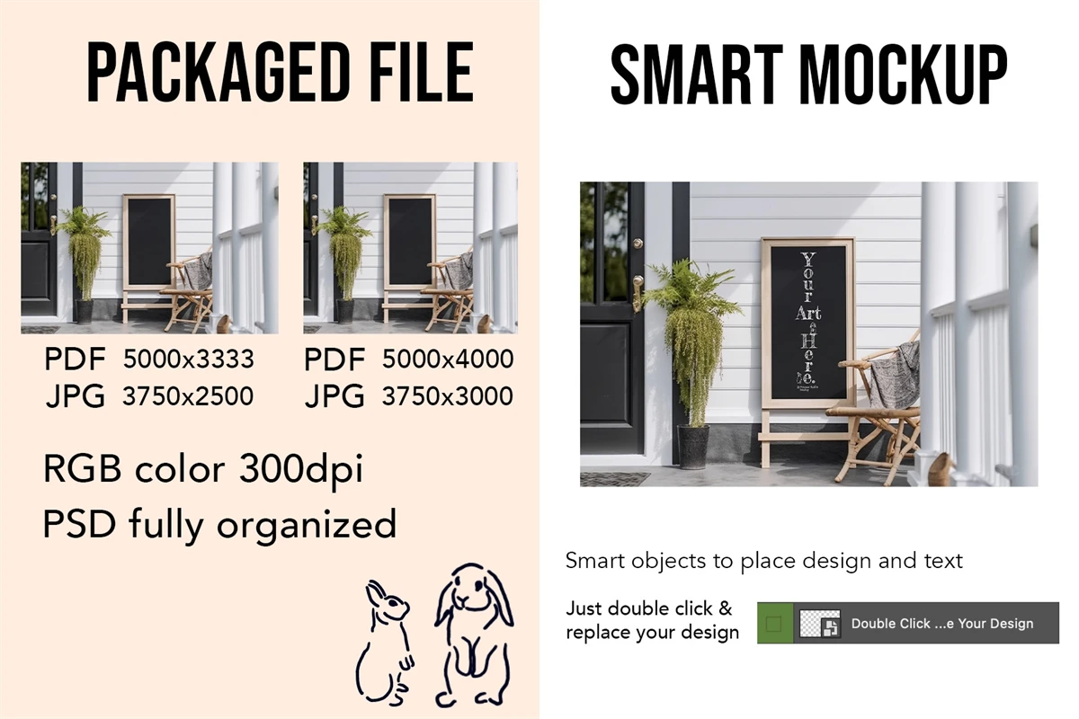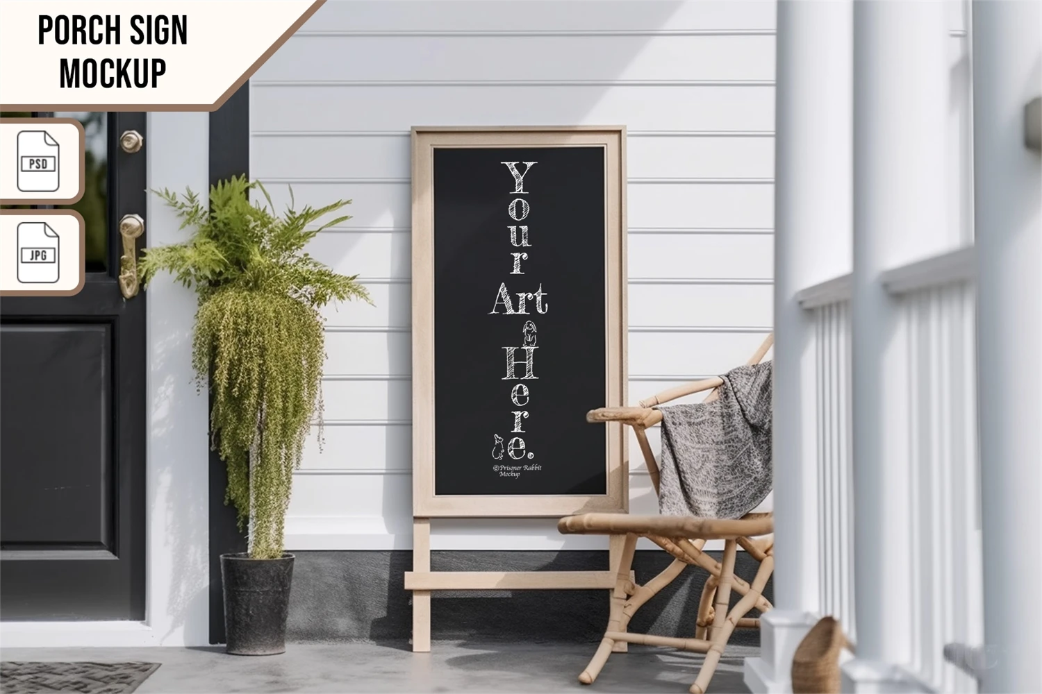 Porch Sign, front door sign smart mockup with Photoshop (PSD) template for logo design, sublimation, art and graphic designs