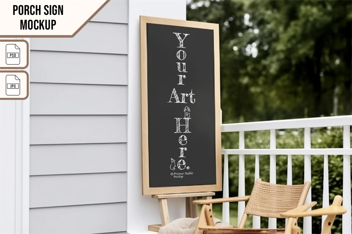 Porch Sign, front door sign smart mockup with Photoshop (PSD) template for logo design, sublimation, art and graphic designs