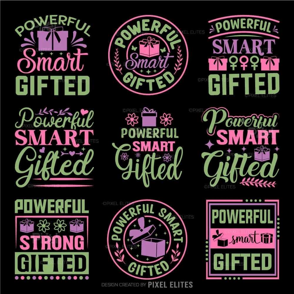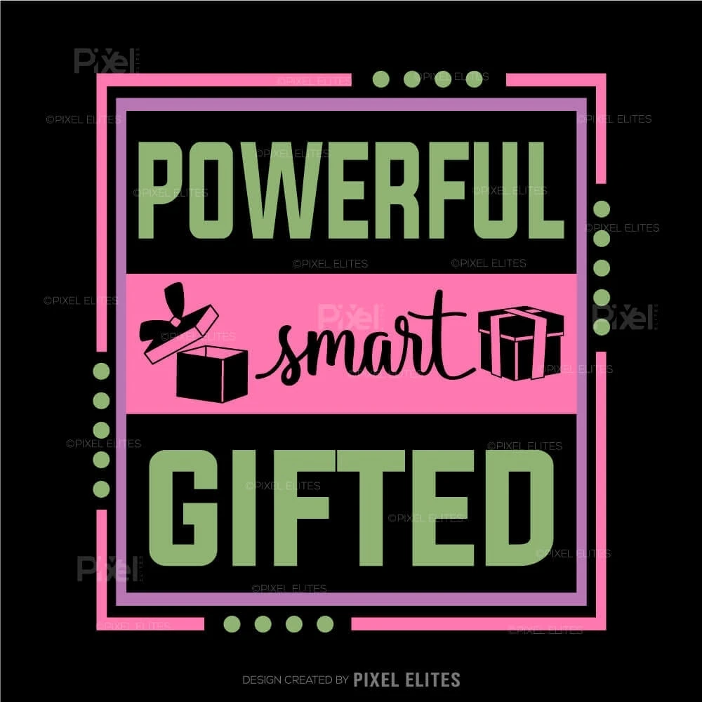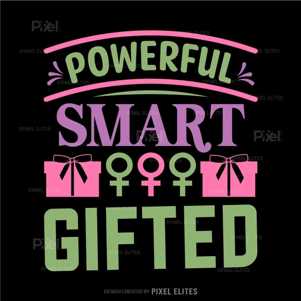 - Inspiring Message: Powerful Smart Gifted celebrates womens intelligence, strength, and unique talents, making it ideal for Womens Day projects.