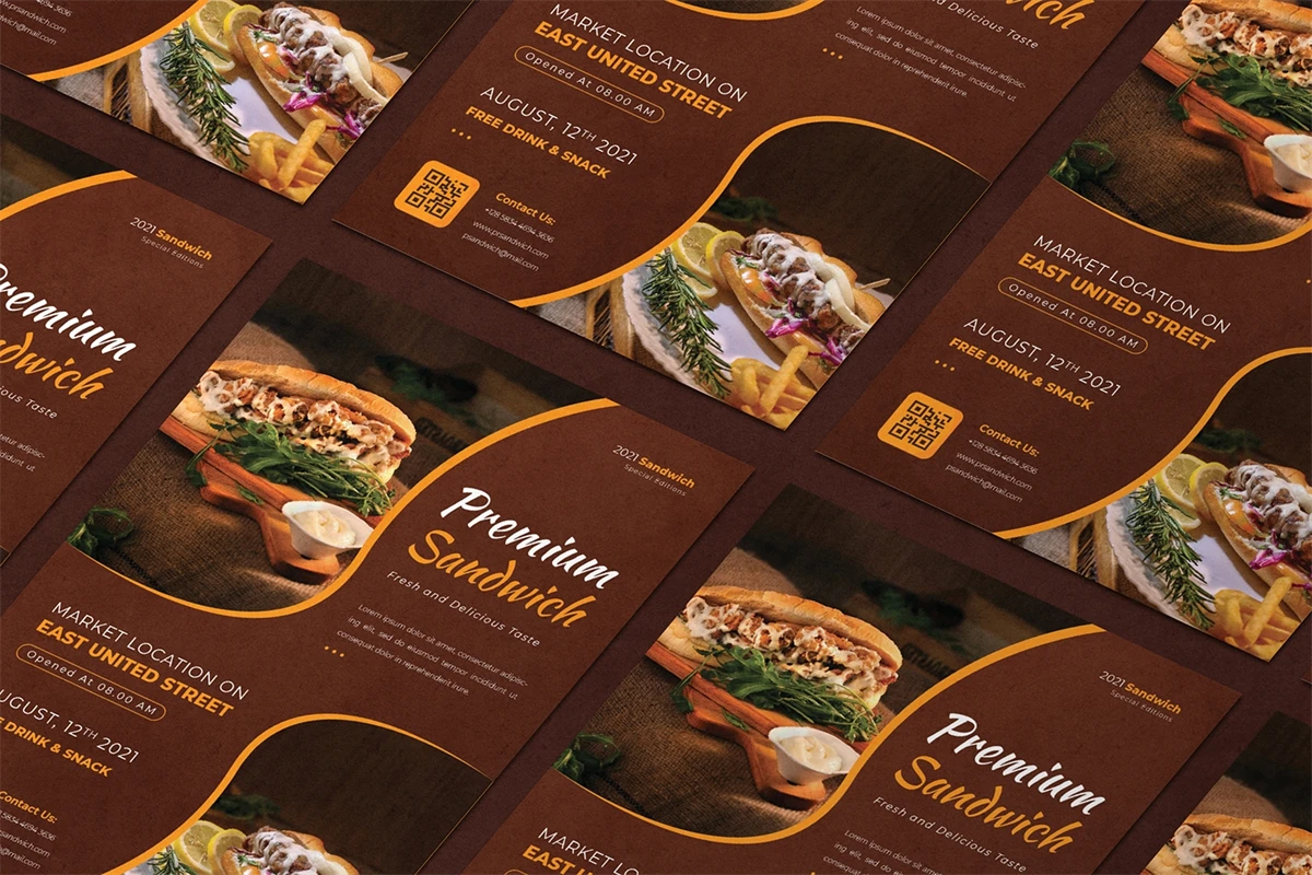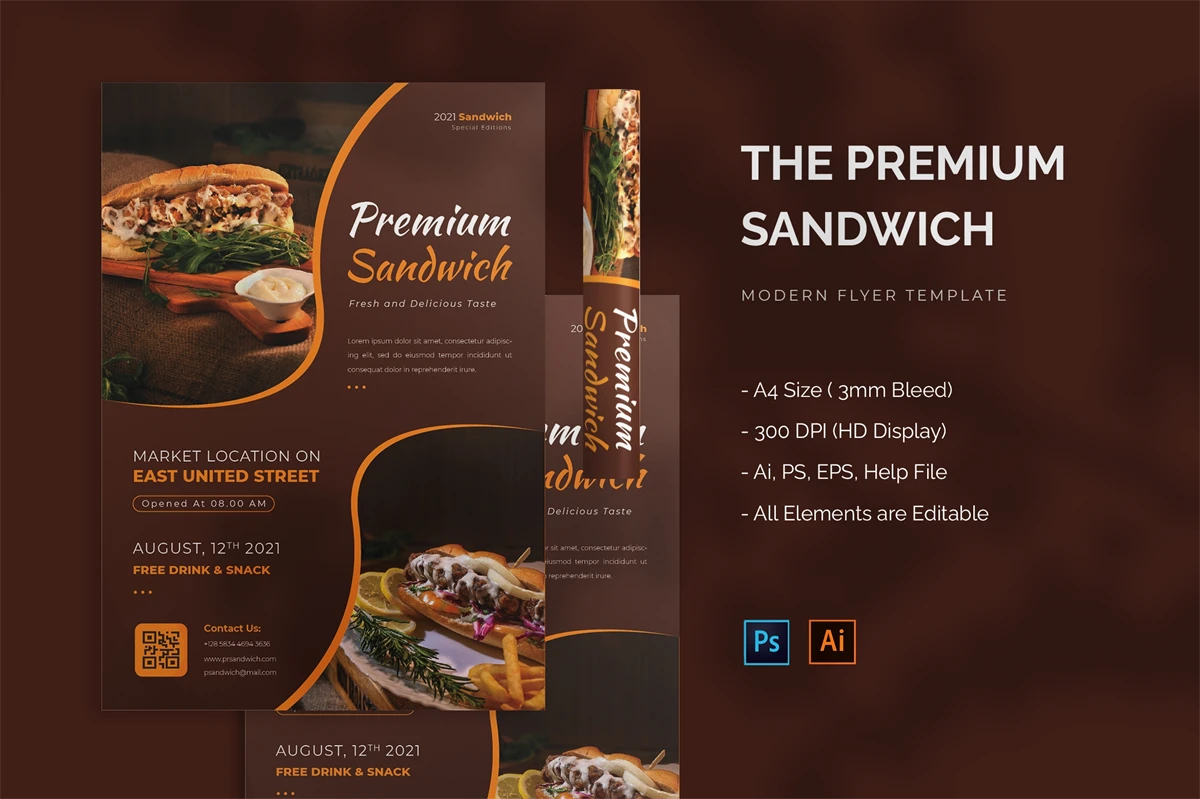 Premium Sandwich - Flyer. This Flyer template is designed for your company's business needs. very clean and elegant, and also easily edited and adjusted to your liking