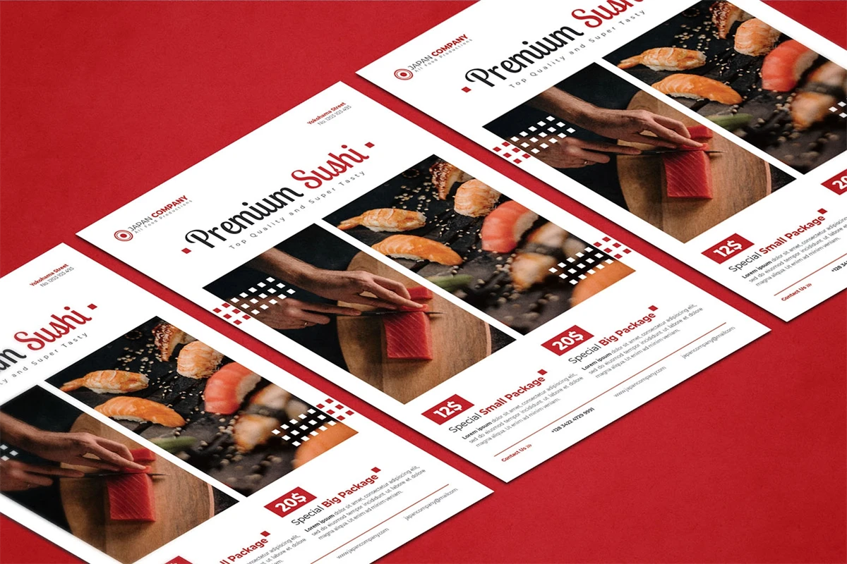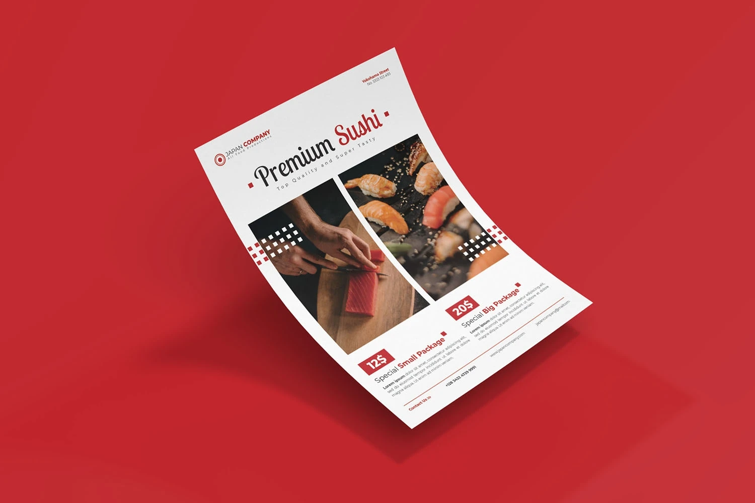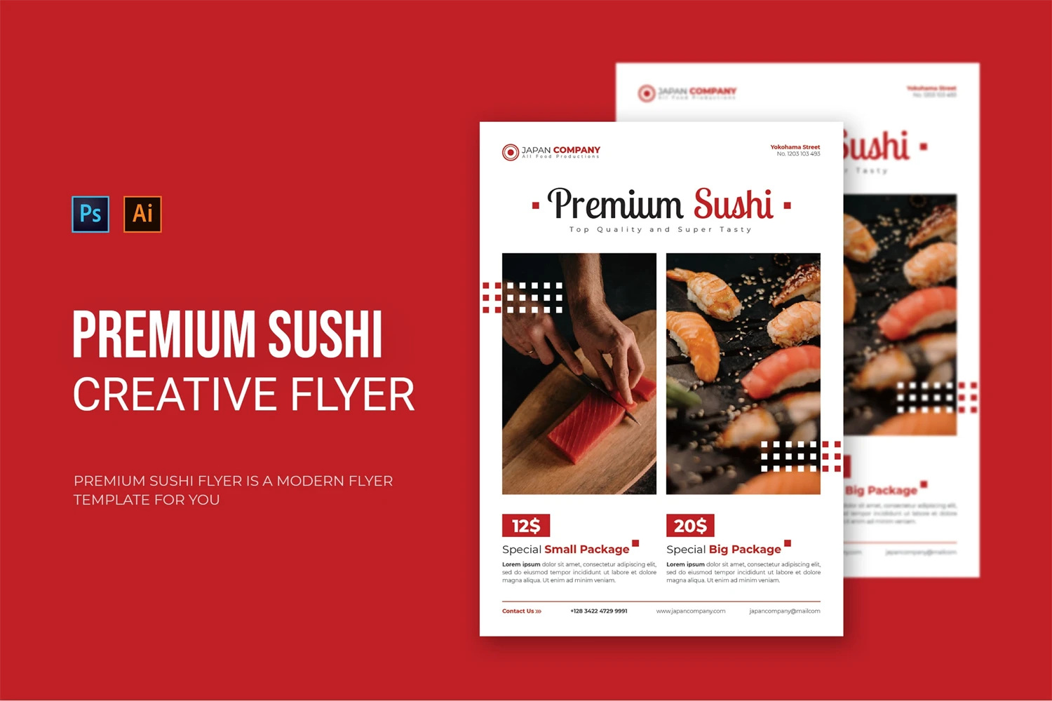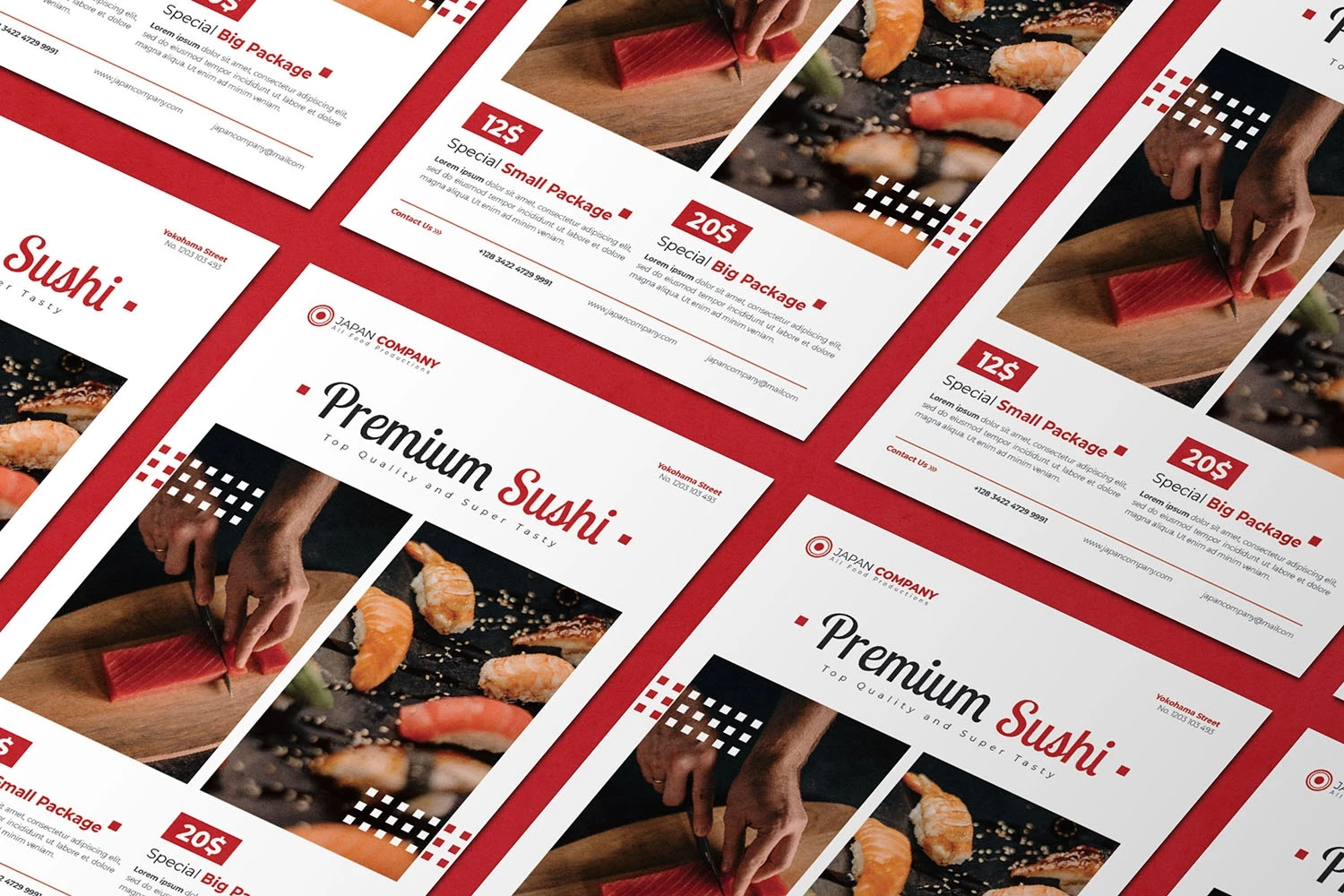 Premium Sushi - Flyer. This Flyer template is designed for your company's business needs. very clean and elegant, and also easily edited and adjusted to your liking