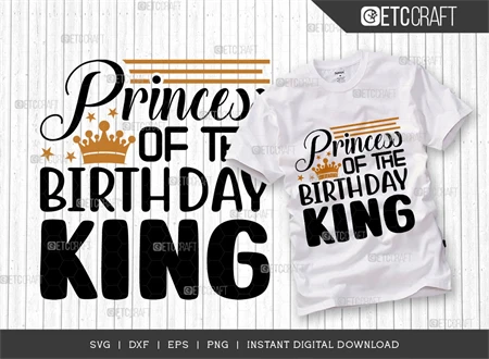 The "Princess Of The Birthday King" SVG is specifically crafted for birthday girls of all ages. Whether you're celebrating a little princess or a grown-up queen, this SVG design can be customized to suit any birthday girl, making it a versatile choice.