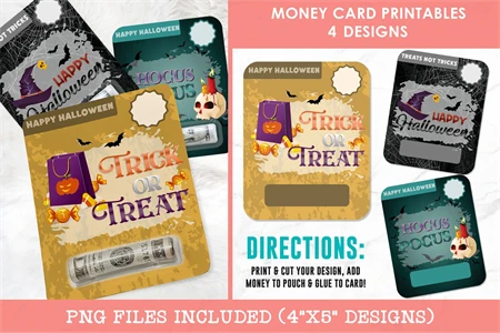 Printable Halloween Money Card, Trick or Treat Gift Design