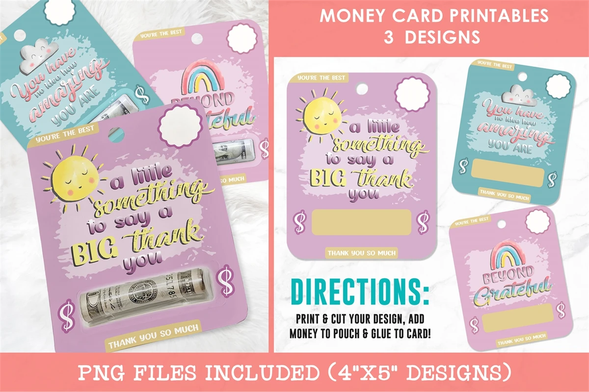 To make project, print and cut your design, add money into your lip balm pouch and glue pouch to the card. Each card comes with a preset dollar amount in the corner and also blank so you can add your own if you need to change the amount! I printed on cardstock and used super glue to complete this. Feel free to message me if you have any questions on how to make this.