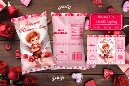 Valentine's card with Watercolor angel PNG. Printable postcard use this postcard to create a greeting card for your loved one!