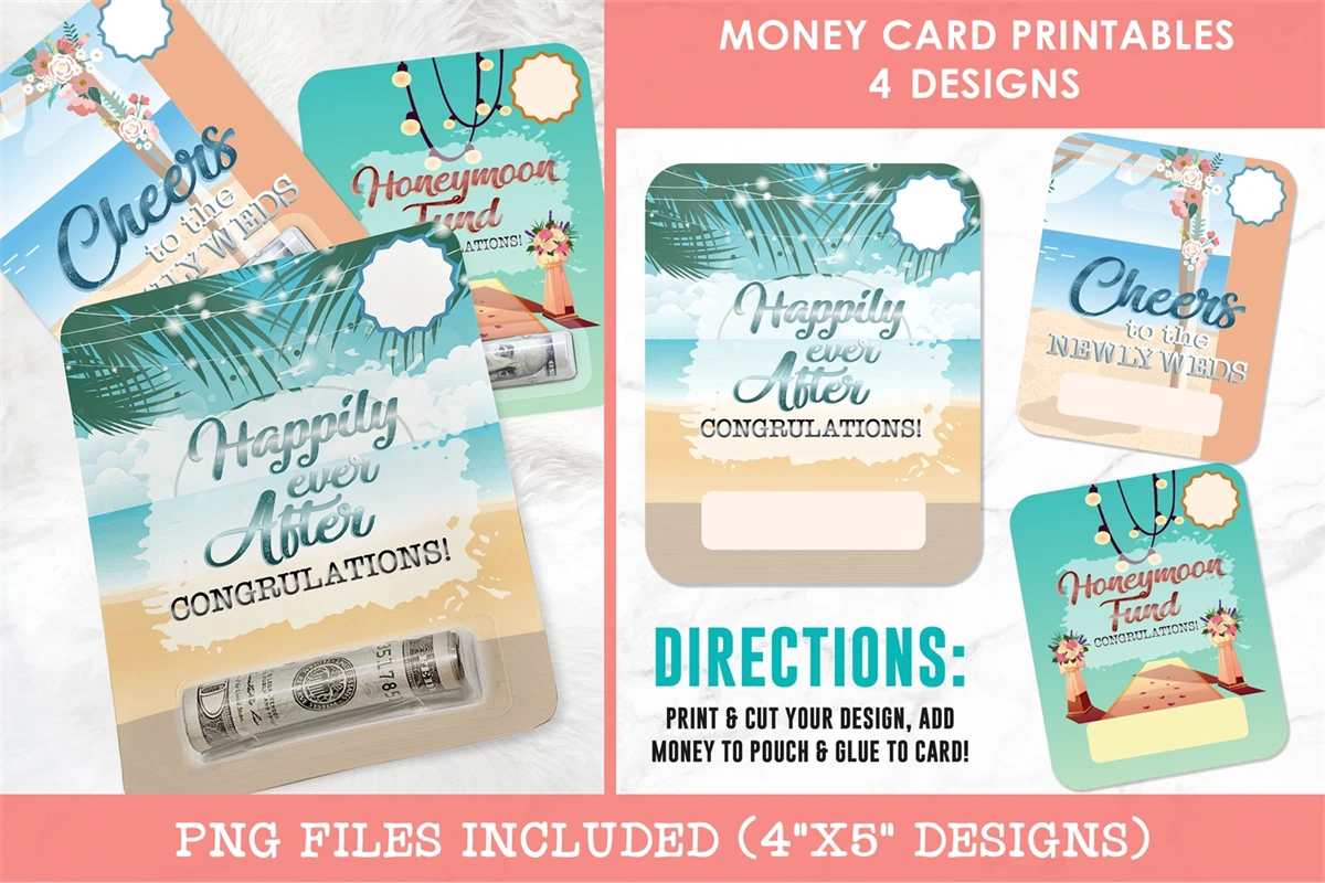 Printable Wedding Money Card Holder Bundle, Honeymoon Fund