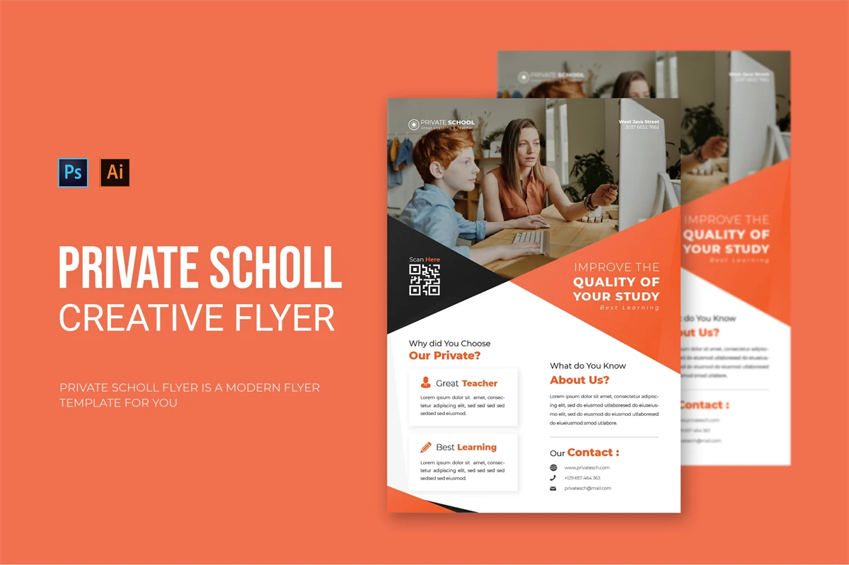 Private School - Flyer. This Flyer template is designed for your company's business needs. very clean and elegant, and also easily edited and adjusted to your liking