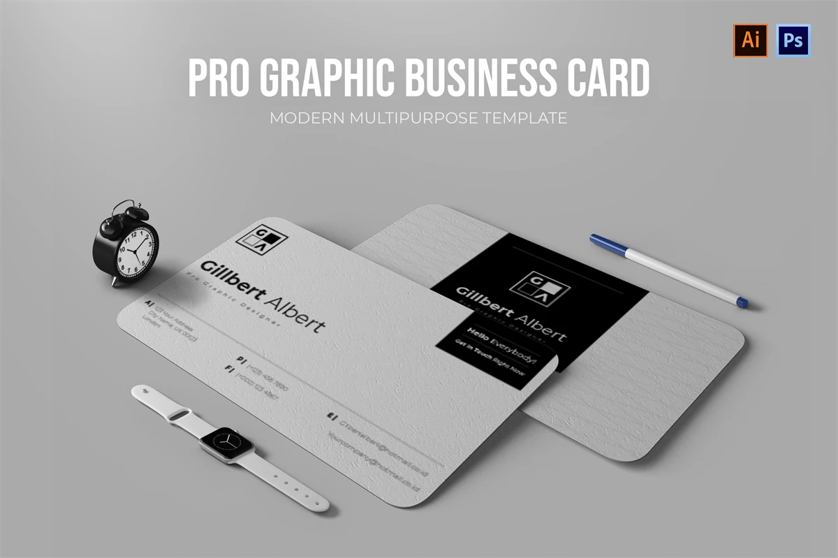 This Pro Graphic Design - Business Card make your business cards look professional. You can use this business card for, identity, company business cards, Corporate Business, Creative, Blogs, Photographers, Artists, Designers, etc.
