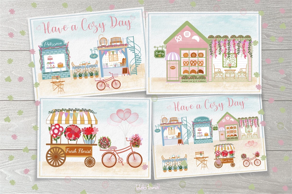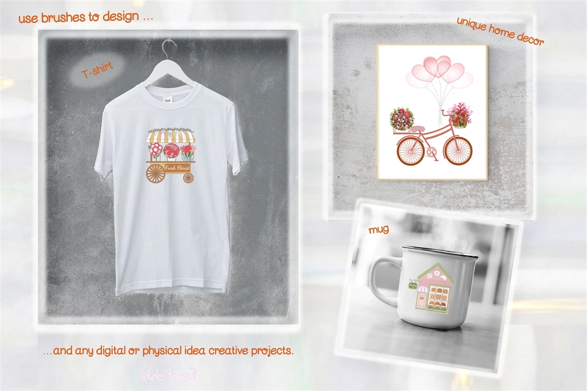 These Brushes Great creative design your dream Downtown Market, House, Store or Your Shop for element, decorative, decoration, ornament, holiday, anniversary, Invitation, Greeting Card, gift, scrapbook or digital planner. Create physical items (t-shirts. mugs, wall art, tumblers, etc.) and any DIY design project.