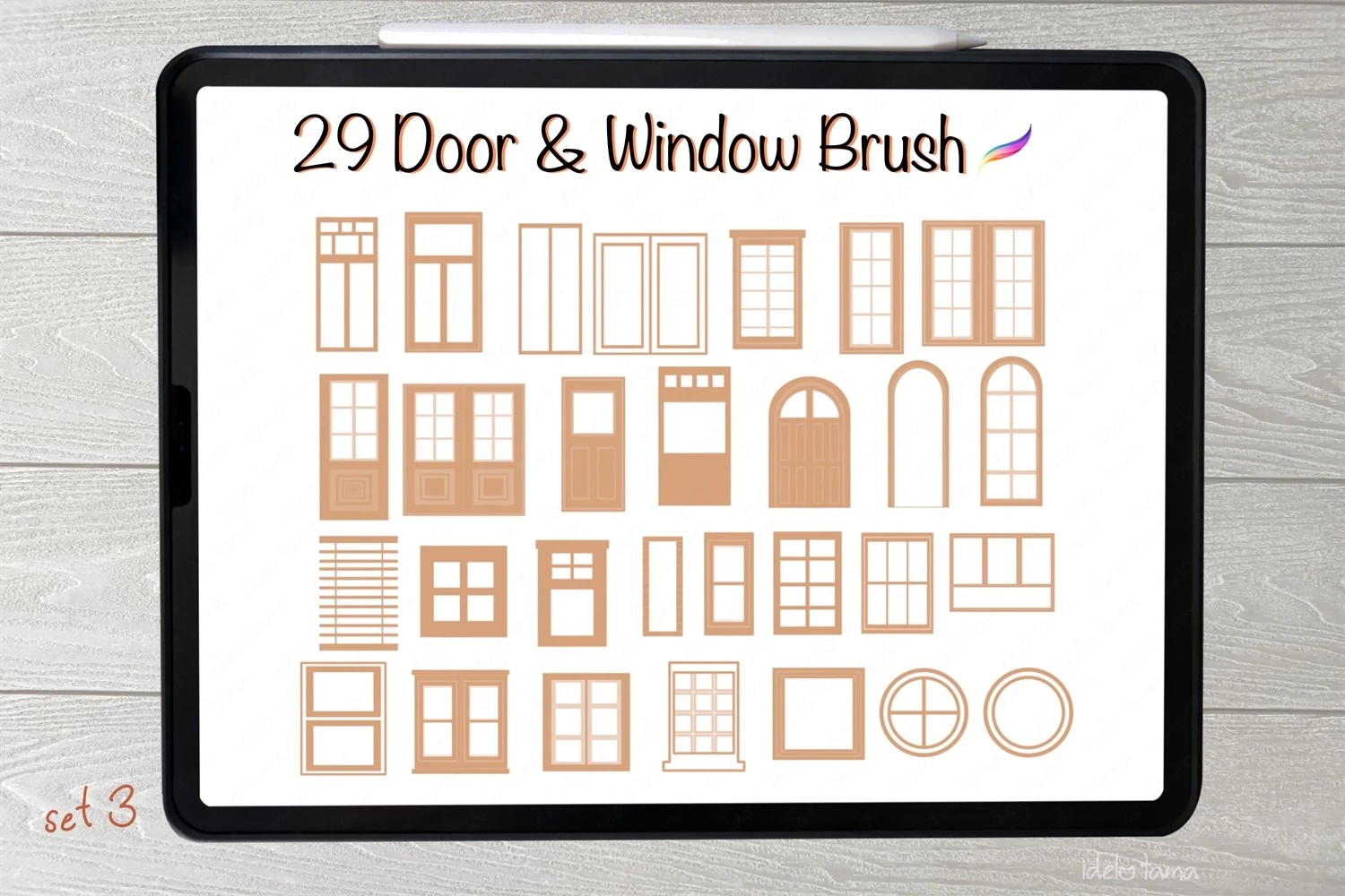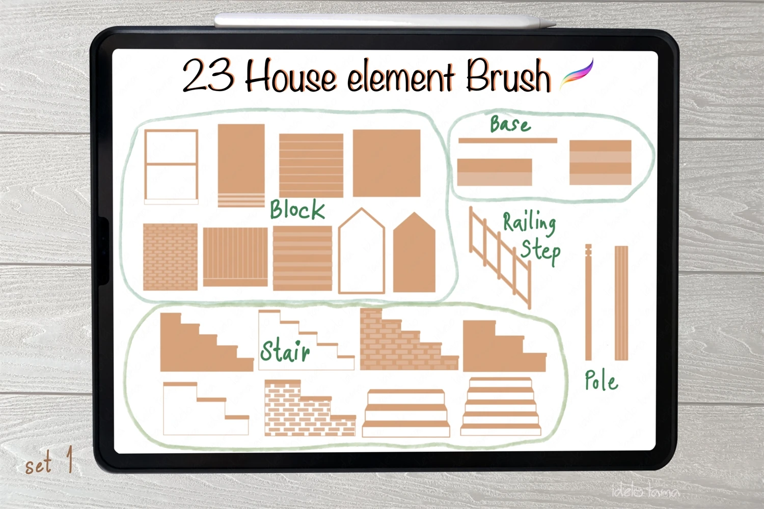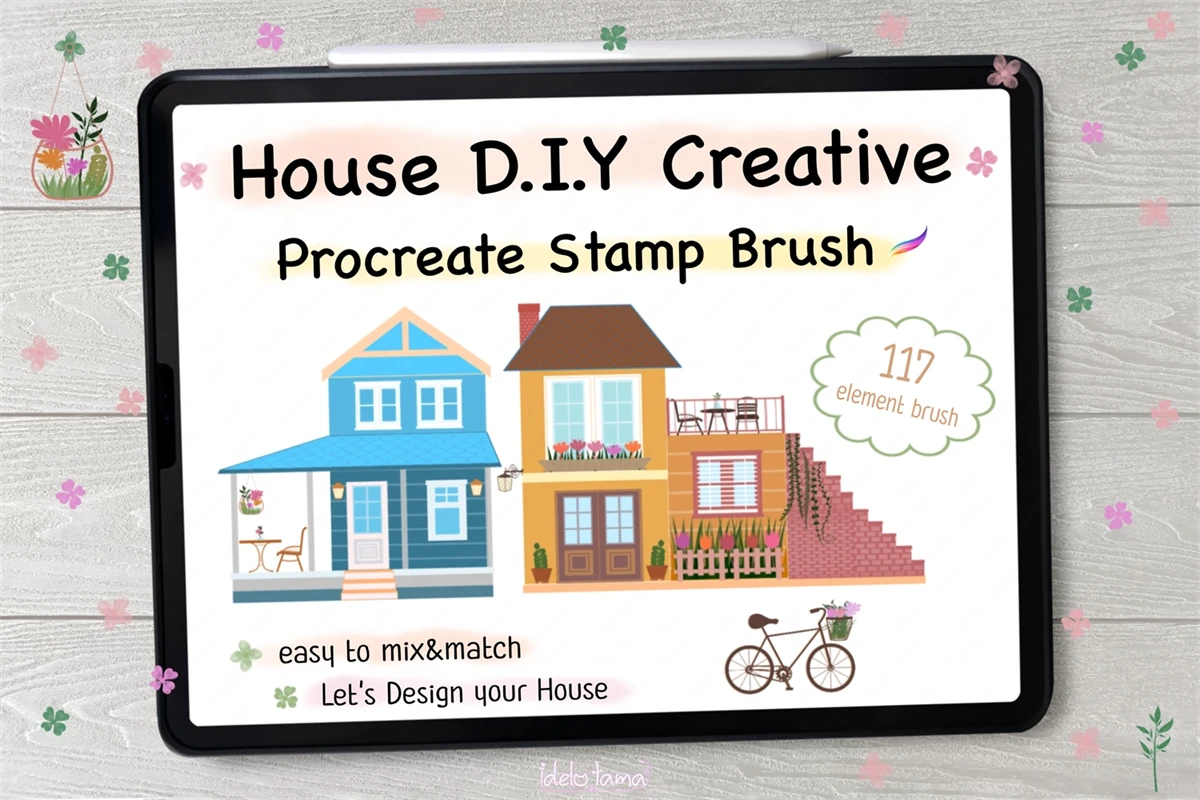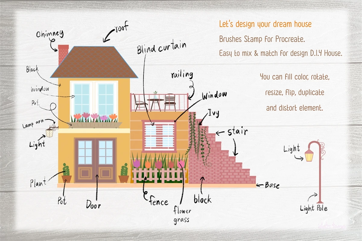 117 Add-ons House DIY create design mix&match structure element Procreate stamp brushes set.