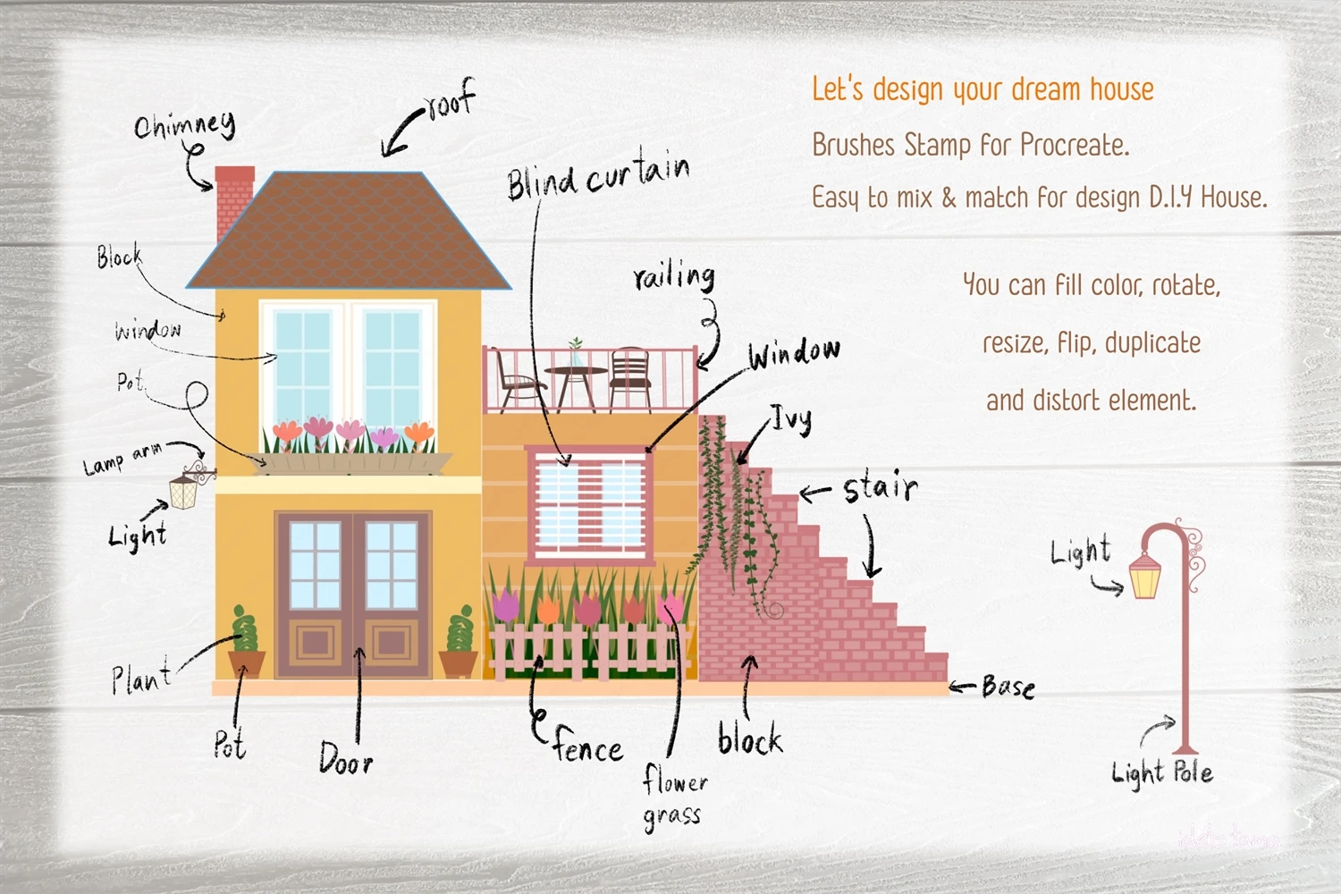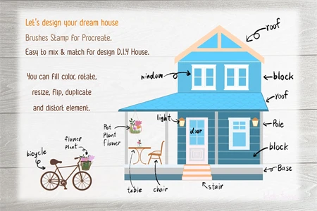 Brush Stamp Procreate app Great creative design your dream House for element, decorative, decoration, ornament, holiday, anniversary, Invitation, Greeting Card, gift, scrapbook and any DIY design project.