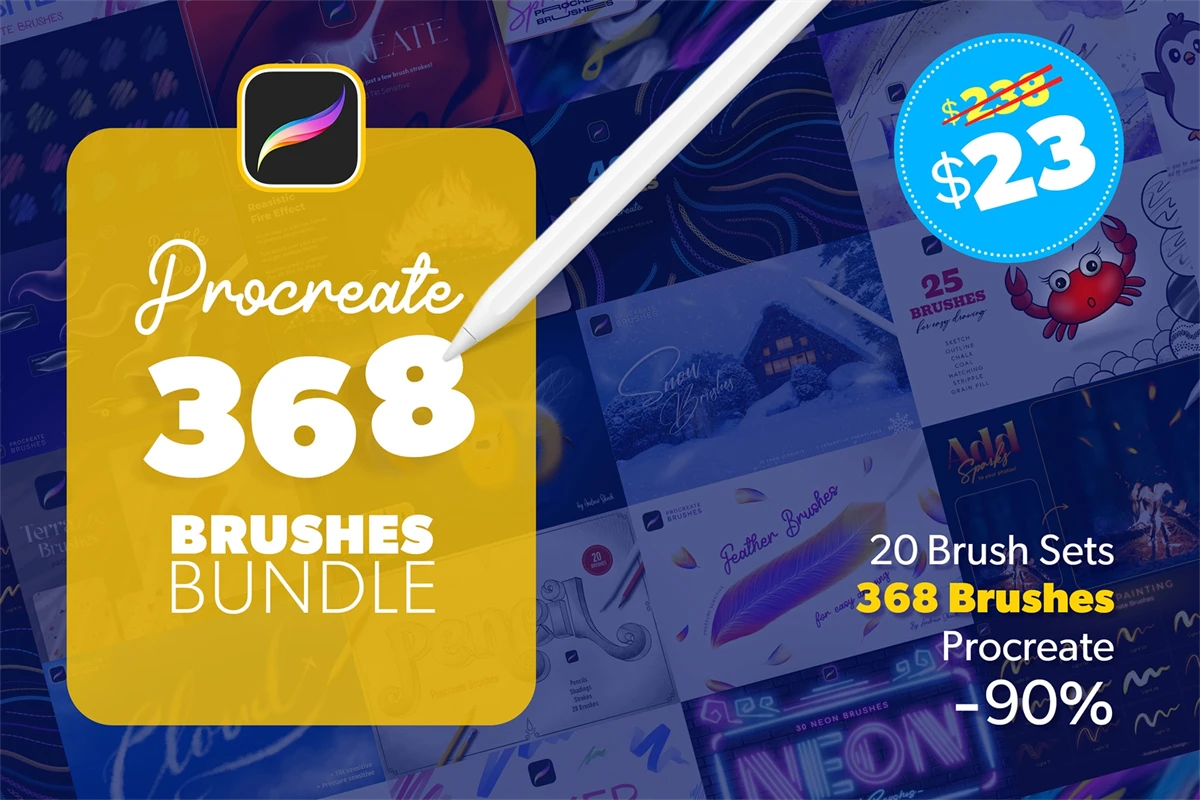 The 368 Procreate Brushes Bundle is a comprehensive set of high-quality digital brushes for use with the popular Procreate app. With over 360 unique brushes, this bundle offers a wide range of options for artists and designers to explore and create stunning digital art.