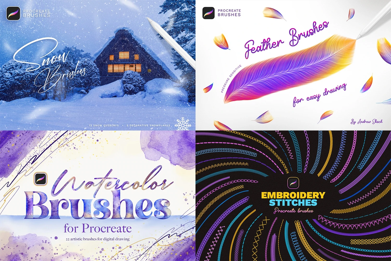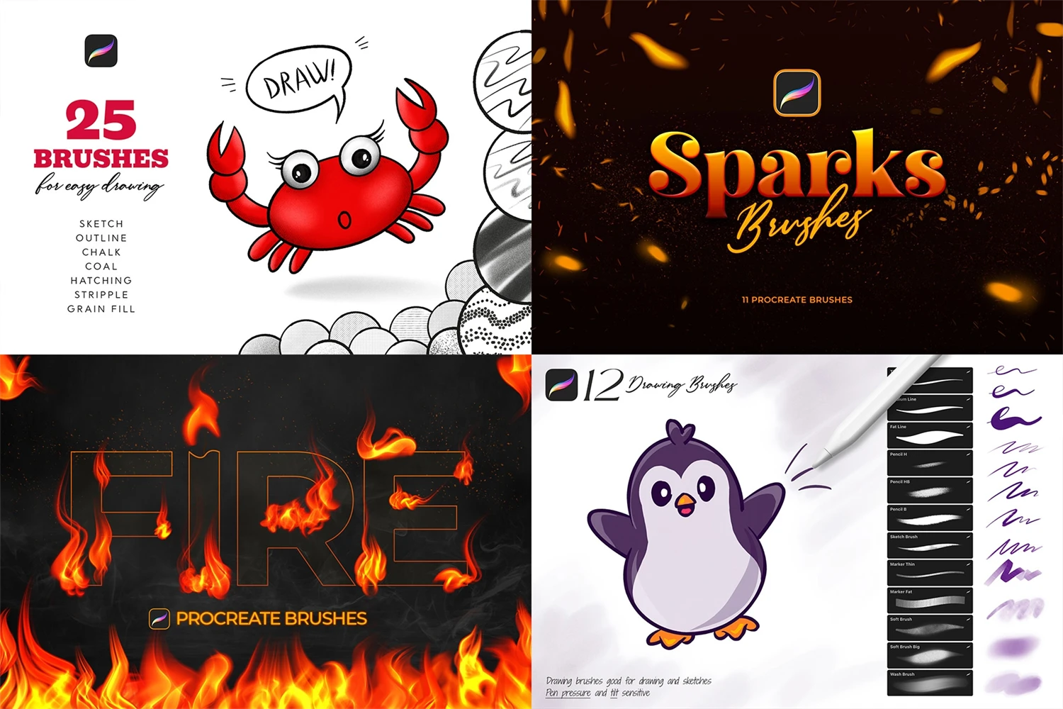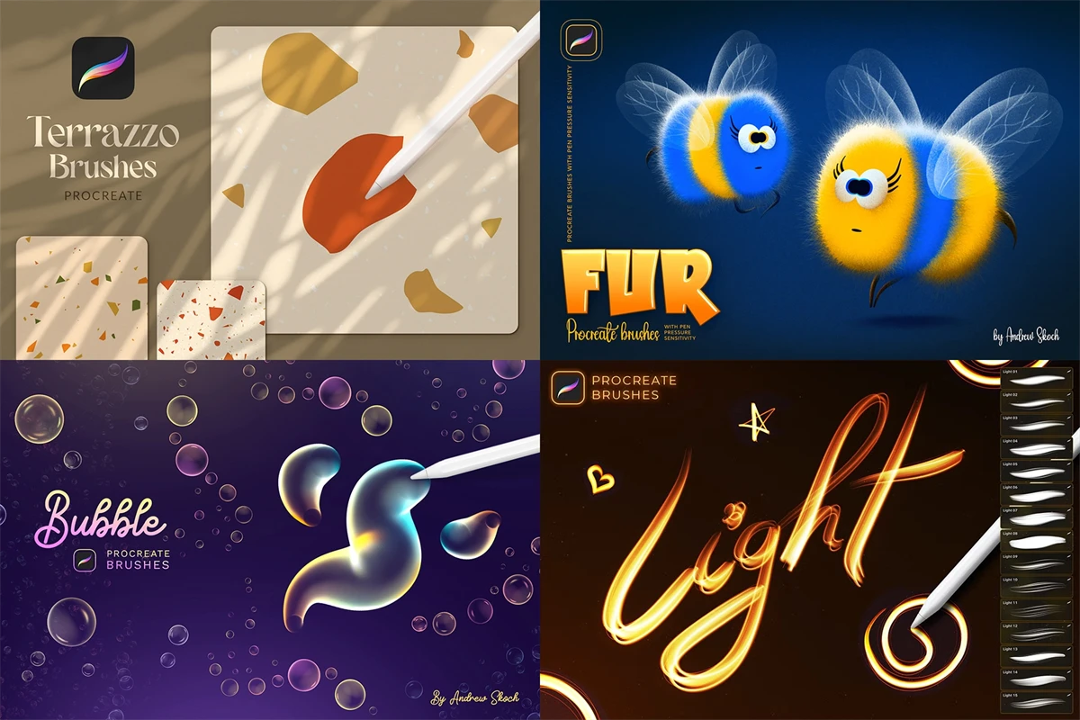 Get 368 brushes for iPad drawing in Procreate app. 20 different effects for easy drawing!