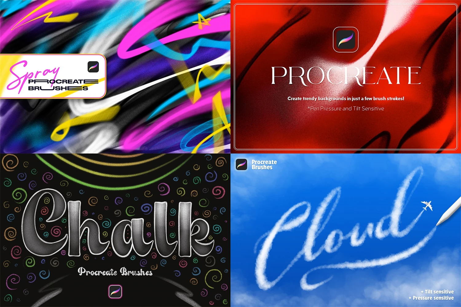 The brushes include a variety of styles, including watercolor, smoke, chalk, pencil, and more. They are perfect for creating anything from detailed illustrations and designs to abstract art and lettering.