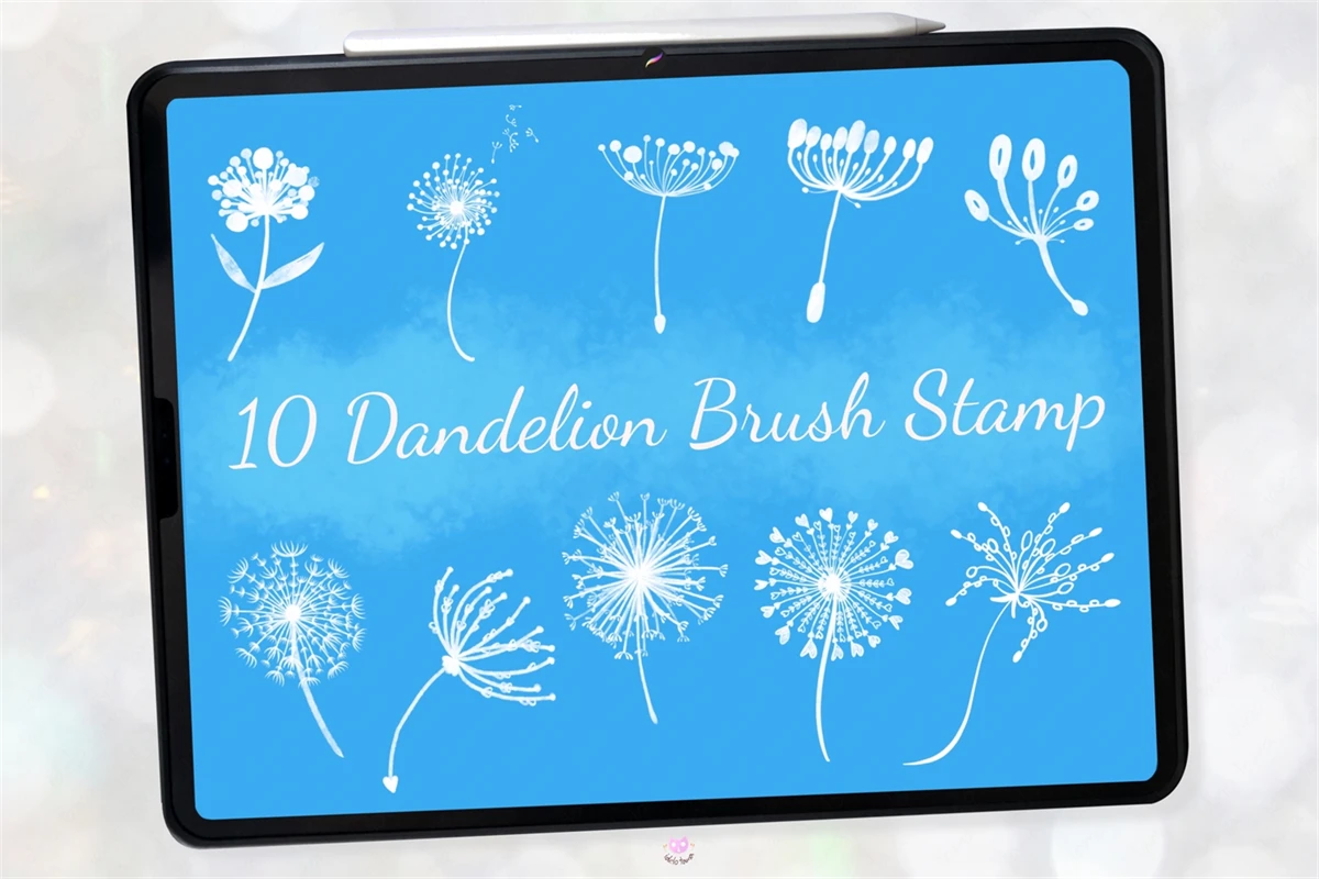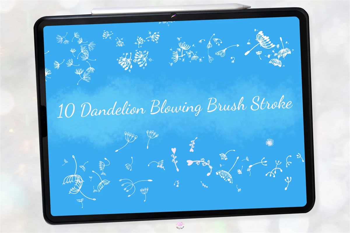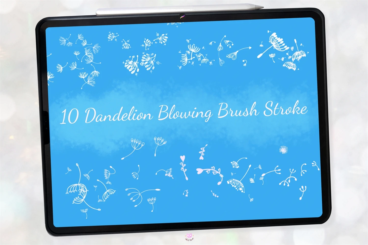 20 Add-ons Dandelion Floral Spring Watercolor Procreate brushes set. Hand drawn painted watercolor stamp brush and strokes brush.