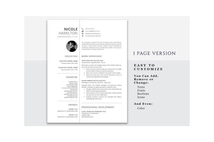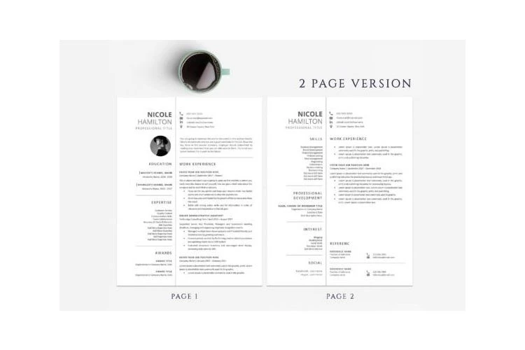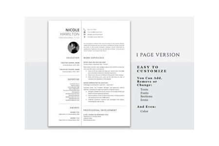 One Page Resume Template. Two Page Resume Template. Three Page Resume Template. Reference Page Template Cover Letter Template Microsoft Word (.docx) files A4 and US Letter Paper size version. 100 + Extra Icon set. Step-by-step Instructions Guide. Helpful tips and tricks with Action Verbs Friendly Customer Service I am always there for you to help. Just give me a message or email.