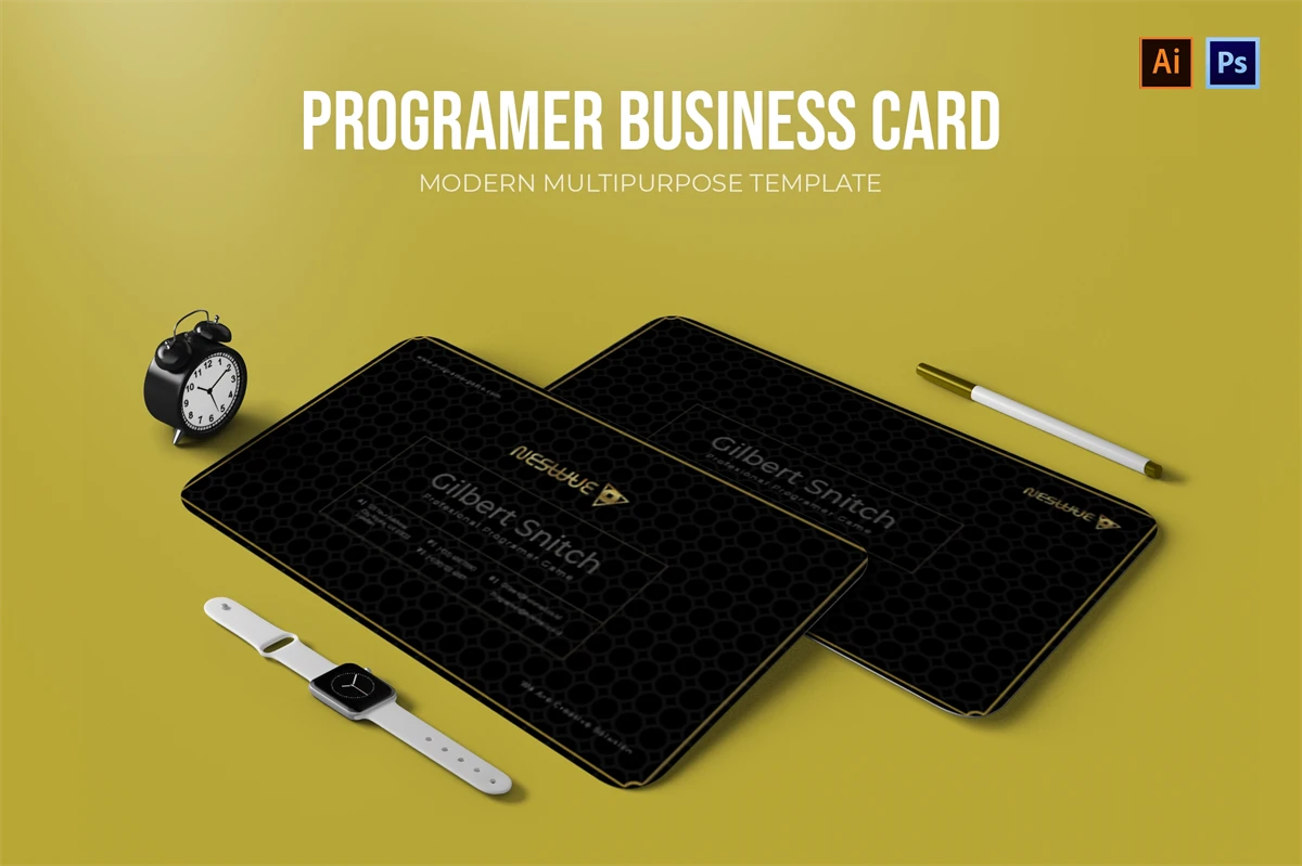 This Programer - Business Card make your business cards look professional. You can use this business card for, identity, company business cards, Corporate Business, Creative, Blogs, Photographers, Artists, Designers, etc.