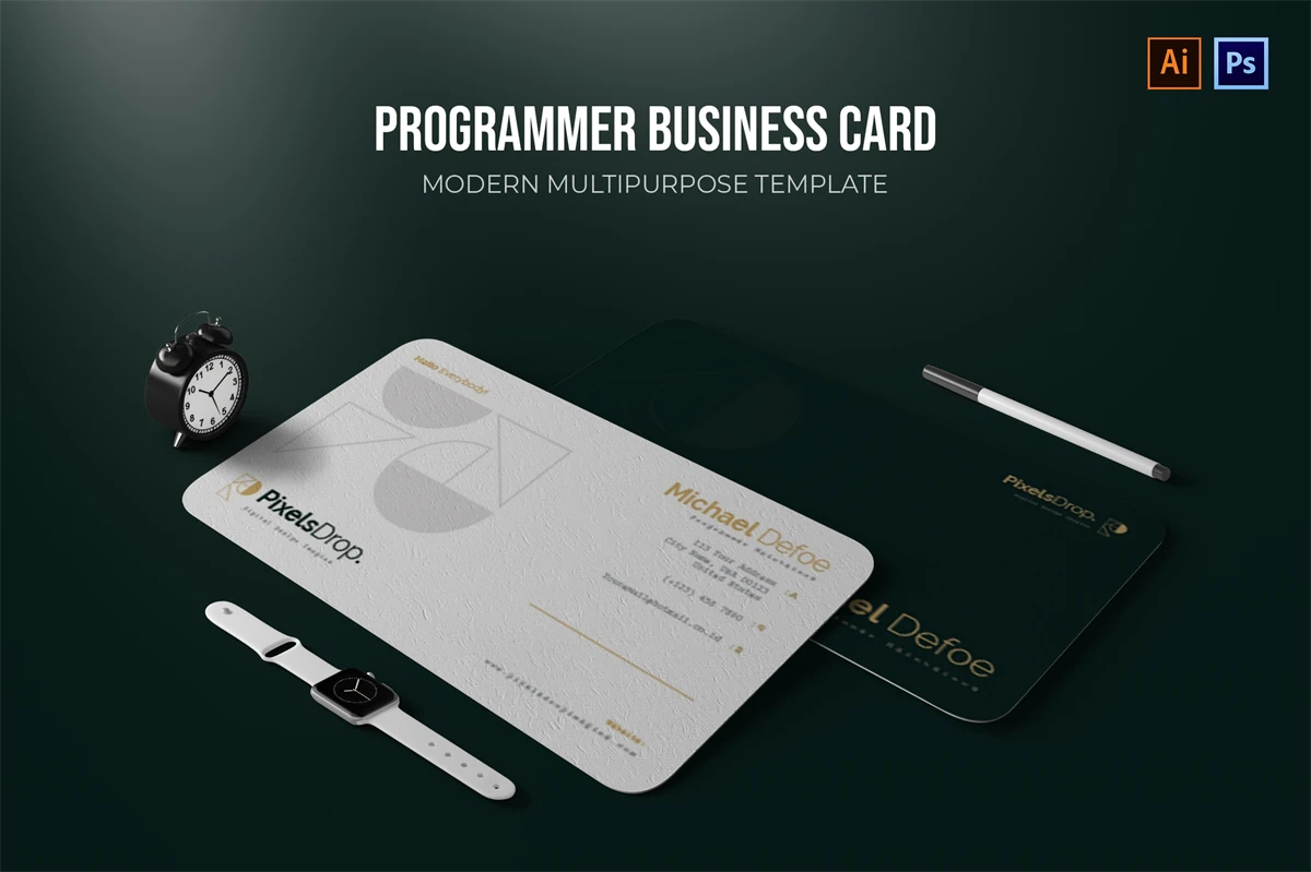 This Programmer - Business Card make your business cards look professional. You can use this business card for, identity, company business cards, Corporate Business, Creative, Blogs, Photographers, Artists, Designers, etc.