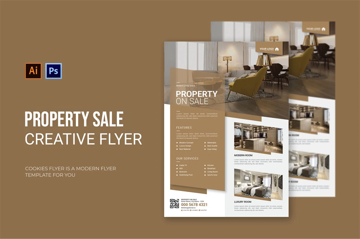 Property Sale - Flyer. This Flyer template is designed for your company's business needs. very clean and elegant, and also easily edited and adjusted to your liking