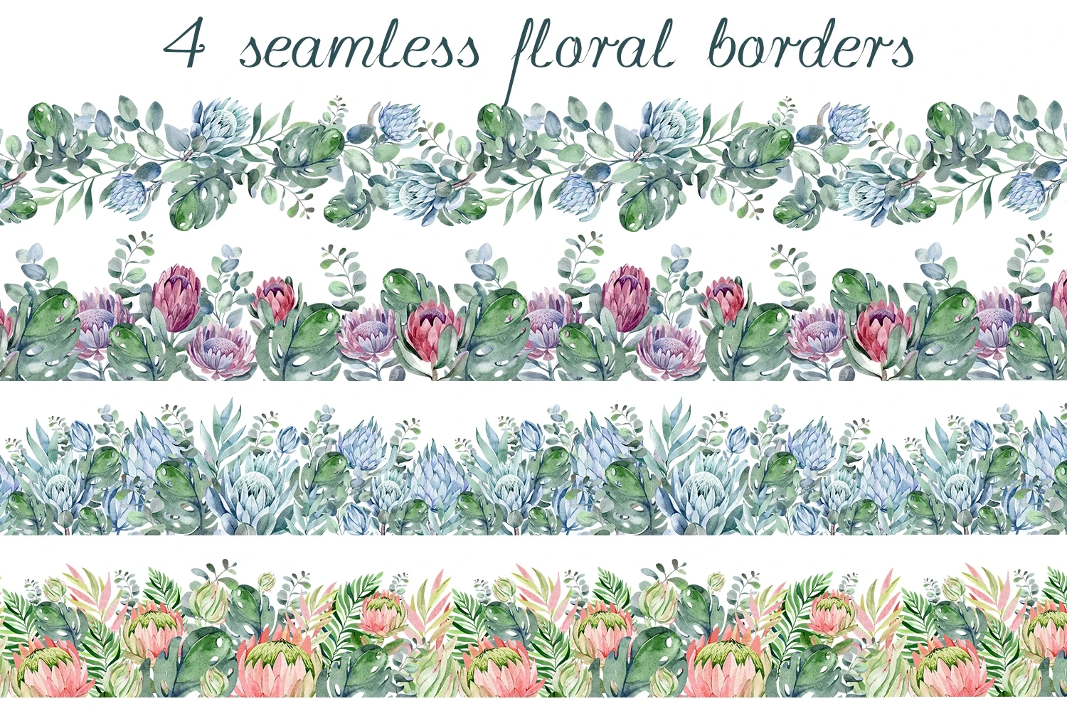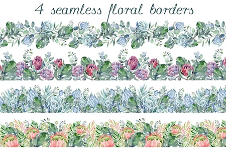 -4 seamless floral borders, (300 dpi, transparent background)