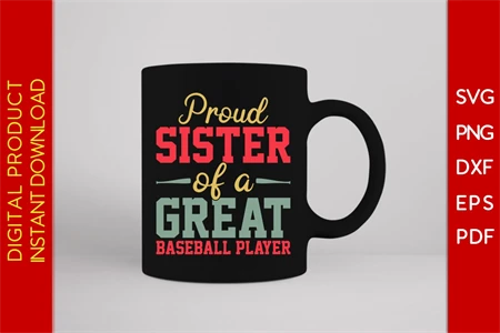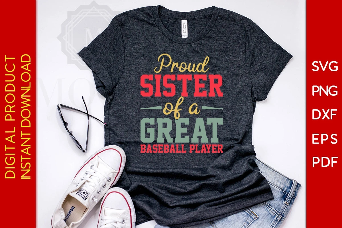 Proud Sister Of A Great Baseball Player SVG Printable Files.