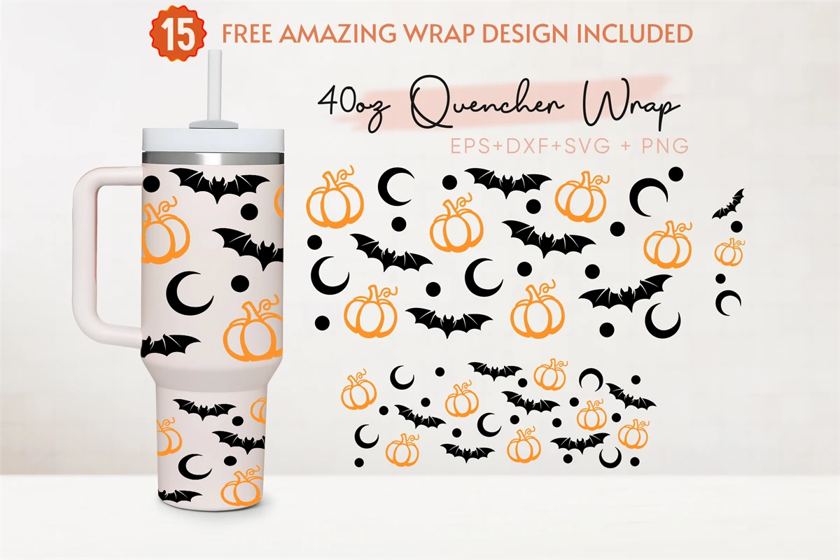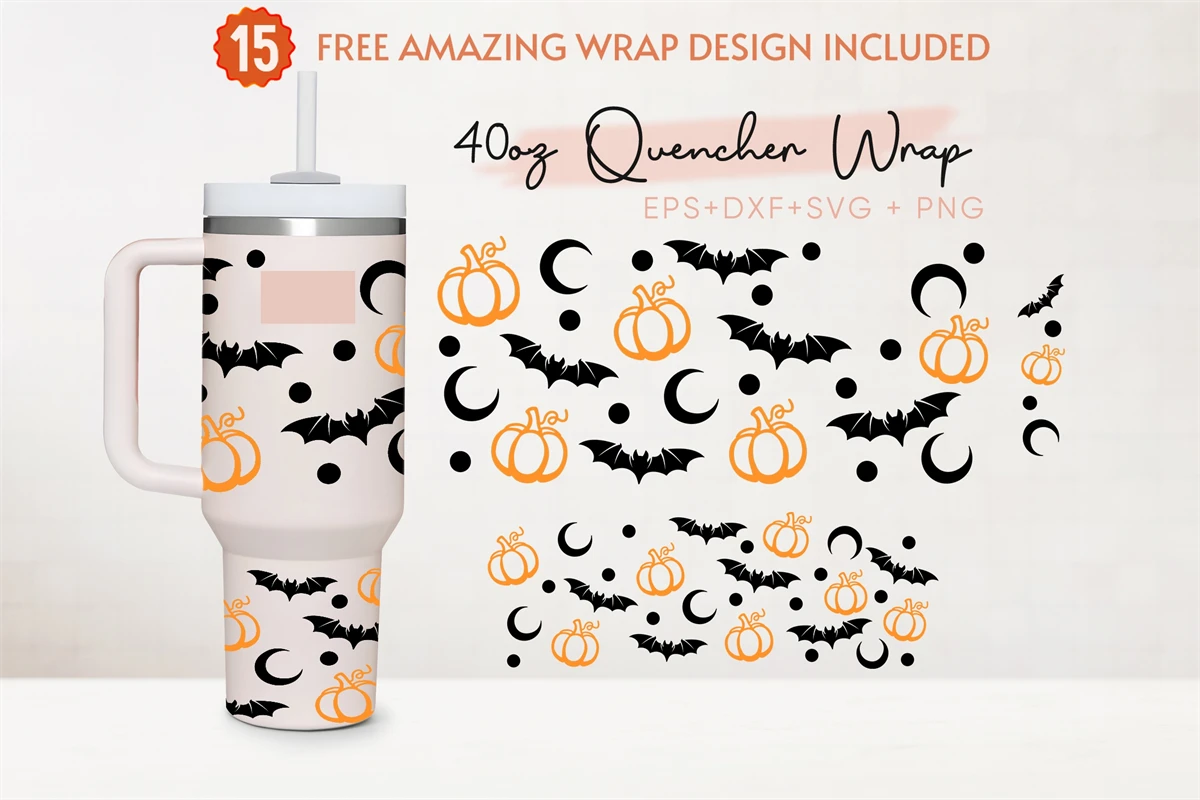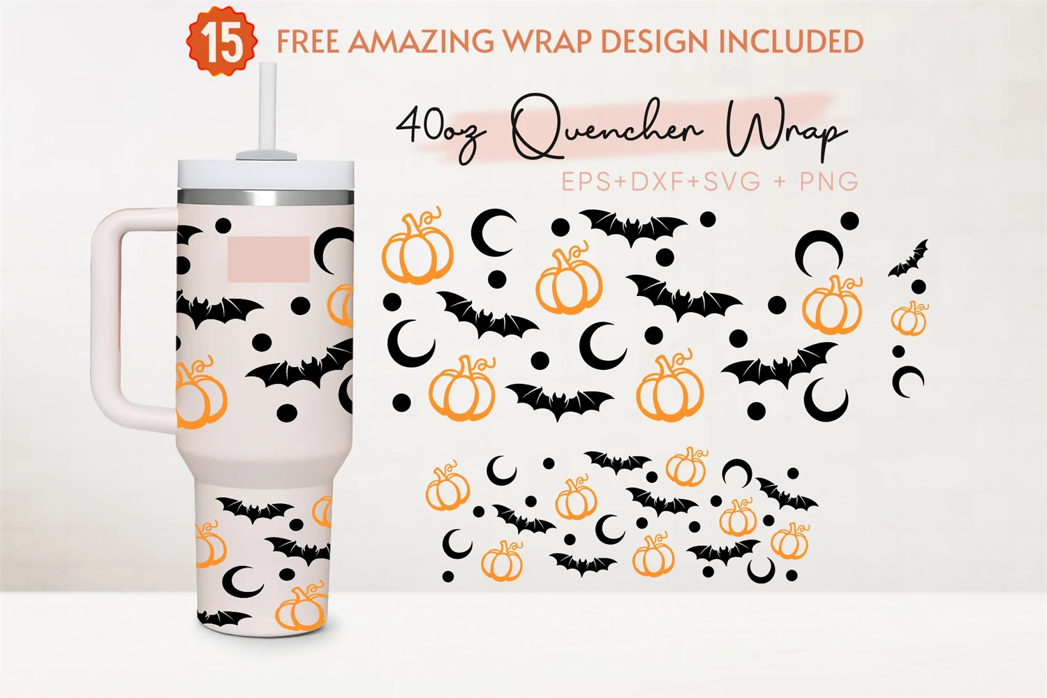 Pumpkin 40oz Quencher Tumbler, Spooky Season, Halloween, Bat