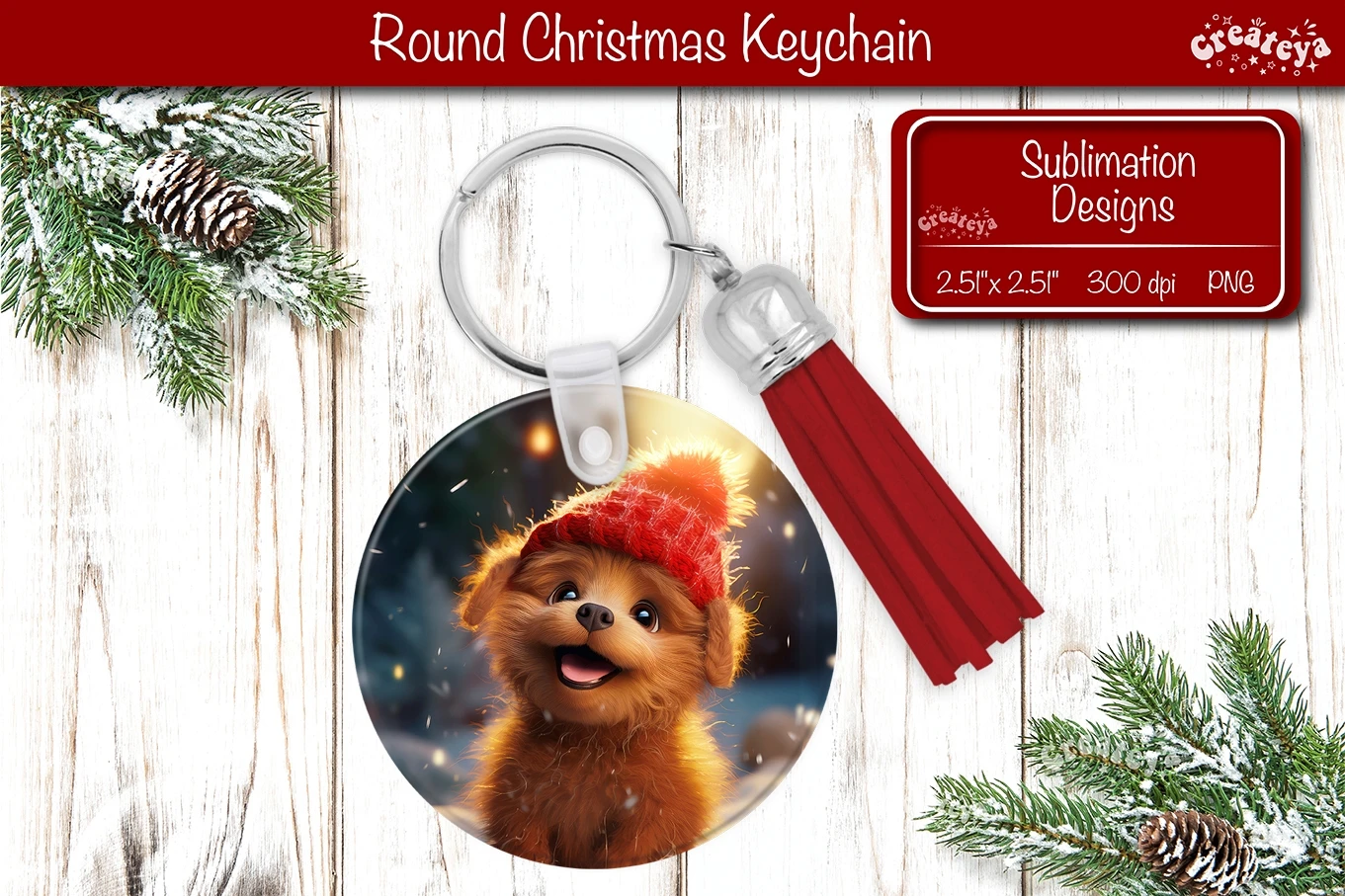 Christmas keychain sublimation designs with cute Christmas Baby Animals print Round Keychain PNG. Christmas Sublimation Round Keychain Perfect as a delightful gift.