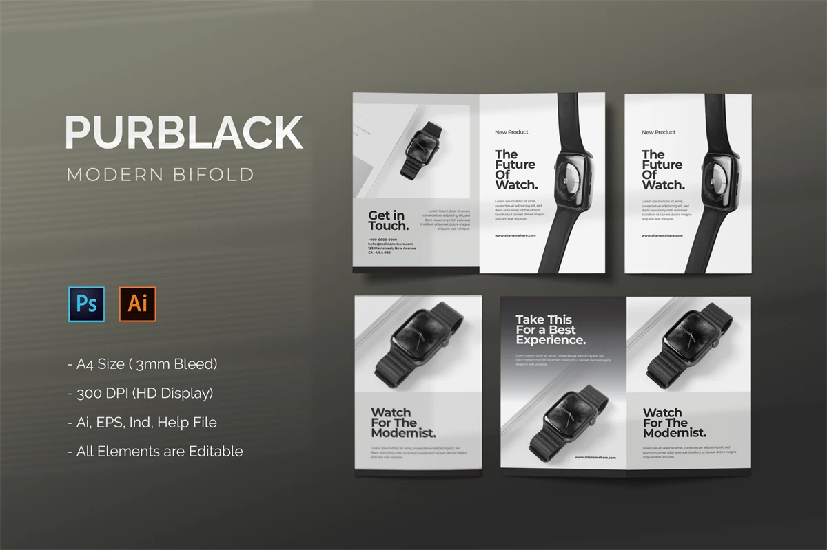 This bifold brochure design template offers a visually engaging canvas to showcase your message, products, or services. With a well-organized layout and attention-grabbing graphics, each panel tells a part of your story.